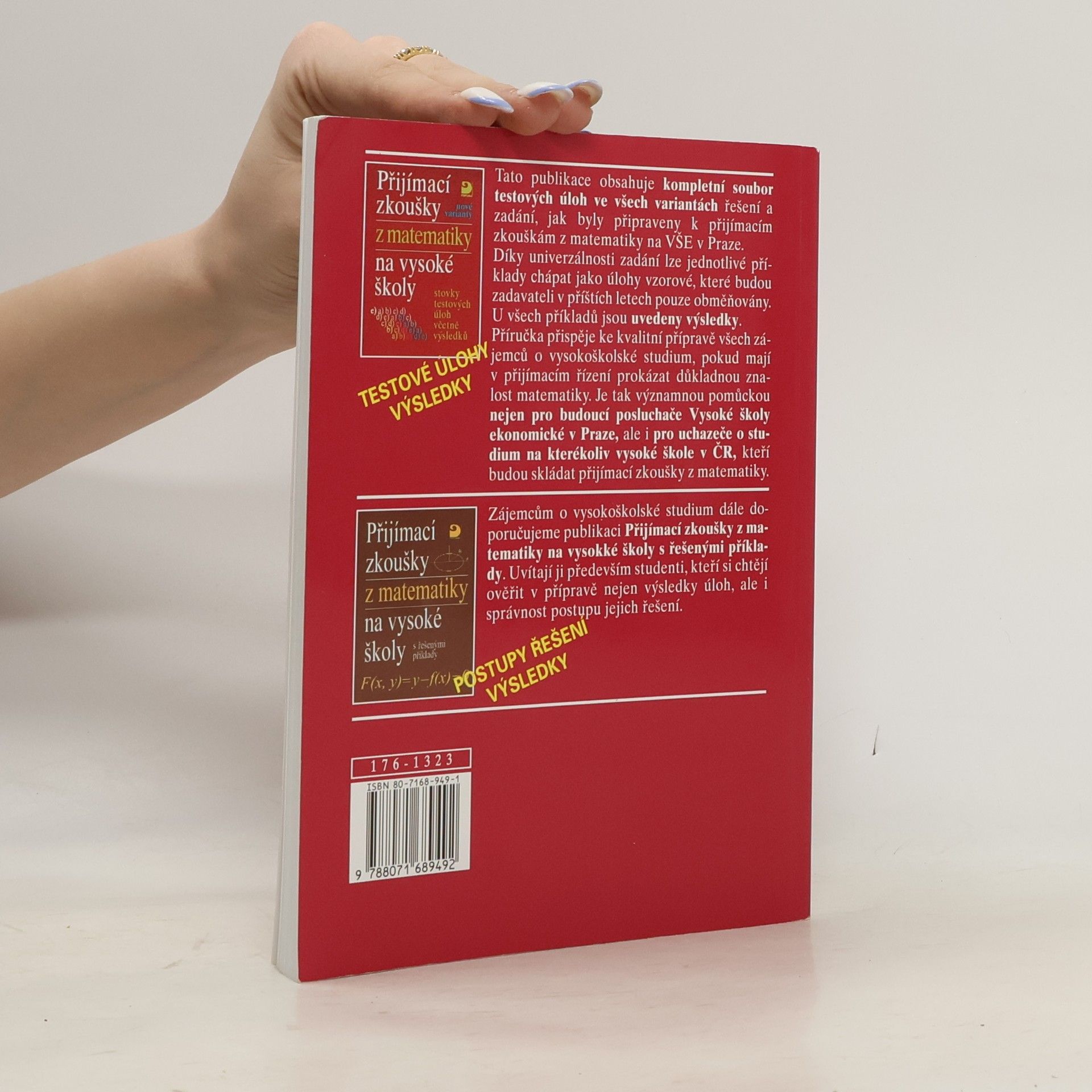Tato publikace obsahuje kompletní soubor testových úloh ve všech variantách řešení a zadání, jak byly připraveny k přijímacím zkouškám z matematiky na VŠE v Praze. Díky univerzálnosti zadání lze jednotlivé příklady chápat jako úlohy vzorové, které budou zadavateli v příštích letech pouze obměňovány. U všech příkladů jsou uvedeny výsledky. Příručka přispěje ke kvalitní přípravě všech zájemců o vysokoškolské studium pokud mají v přijímacím řízení prokázat důkladnou znalost matematiky. Je tak významnou pomůckou nejen pro budoucí posluchače Vysoké školy ekonomické v Praze, ale i pro uchazeče o studium na kterékoliv vysoké škole v ČR, kteří budou skládat přijímací zkoušky z matematiky.
