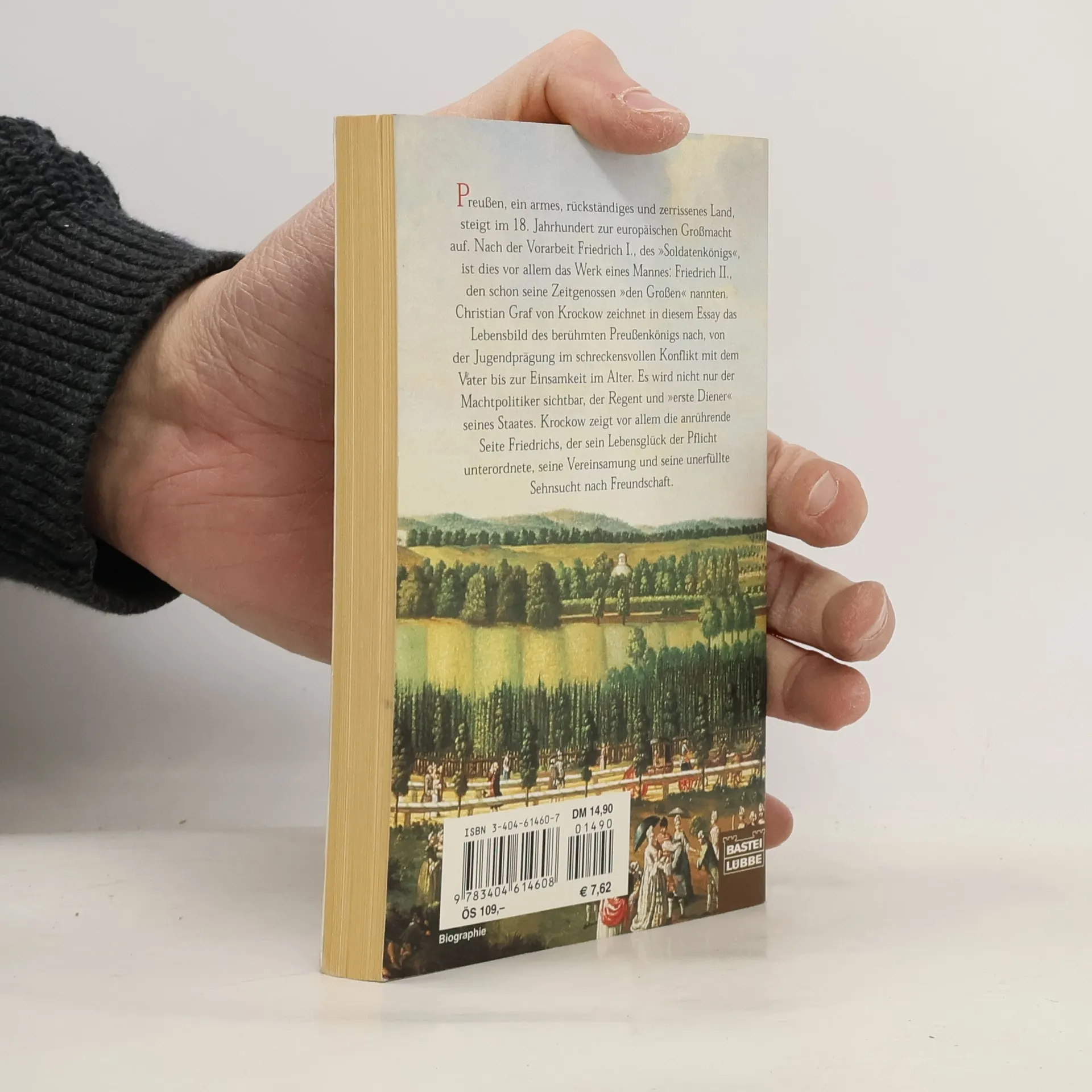 Preußen, ein armes, rückständiges und zerrissenes Land, steigt im 18. Jahrhundert zur europäischen Großmacht auf. Nach der Vorarbeit Friedrich Wilhems I., des „Soldatenkönigs“, ist dies vor allem das Werk eines Mannes: Friedrichs II., den schon seine Zeitgenossen „den Großen“ nannten. Christian Graf von Krockow zeichnet in diesem Essay das Lebensbild des berühmten Preußenkönigs nach, von der Jugendprägung im schreckensvollen Konflikt mit dem Vater bis zur Einsamkeit im Alter. Es wird nicht nur der Machtpolitiker sichtbar, der Regent und „erste Diener“ seines Staates. Krockow zeigt vor allem die anrührende Seite Friedrichs, der sein Lebensglück der Pflicht unterordnete, seine Vereinsamung und seine unerfüllte Sehnsucht nach Freundschaft.