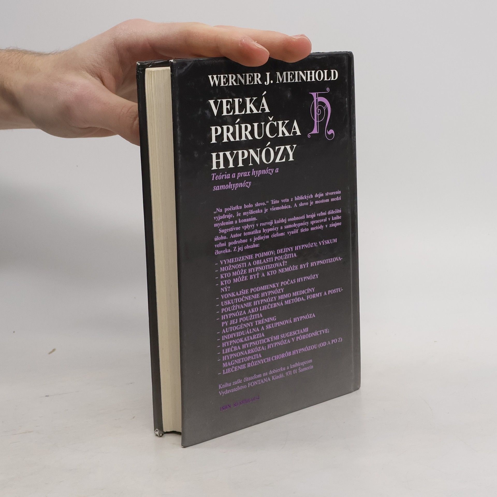 Teória a prax hypnózy a samohypnózy „Na počiatku bolo slovo.“ Táto veta z biblických dejín stvorenia vyjadruje, že myšlienka je všemohúca. A slovo je mostom medzi myslením a konaním. Veľmi podrobná publikácia o použití hypnózy v medicíne, psychológii, pedagogike i v súkromnom živote od popredného nemeckého odborníka. Ako sa naučiť hypnotizovať? Ako využiť hypnózu v praxi atď.