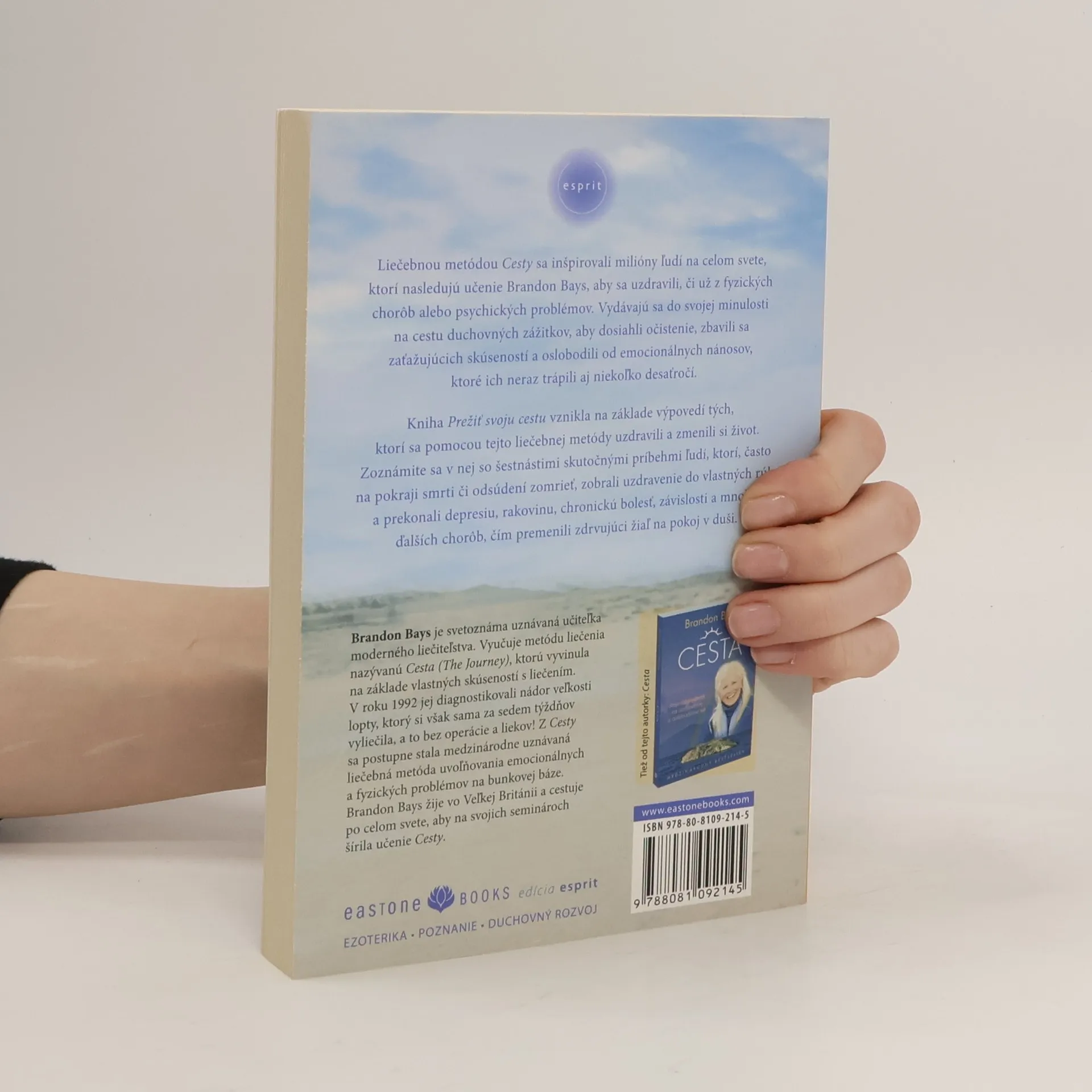 Liečebnou metódou Cesty sa inšpirovali milióny ľudí na celom svete, ktorí nasledujú učenie Brandon Bays, aby sa uzdravili, či už z fyzických chorôb alebo psychických problémov. Vydávajú sa do svojej minulosti na cestu duchovných zážitkov, aby dosiahli očistenie, zbavili sa zaťažujúcich skúseností a oslobodili od emocionálnych nánosov, ktoré ich neraz trápili aj niekoľko desaťročí. Kniha Prežiť svoju cestu vznikla na základe výpovedí tých, ktorí sa pomocou tejto liečebnej metódy uzdravili a zmenili si život. Zoznámite sa v nej so šestnástimi skutočnými príbehmi ľudí, ktorí, často na pokraji smrti či odsúdení zomrieť, zobrali uzdravenie do vlastných rúk a prekonali depresiu, rakovinu, chronickú bolesť, závislosti a mnoho ďalších chorôb, čím premenili zdrvujúci žiaľ na pokoj v duši.