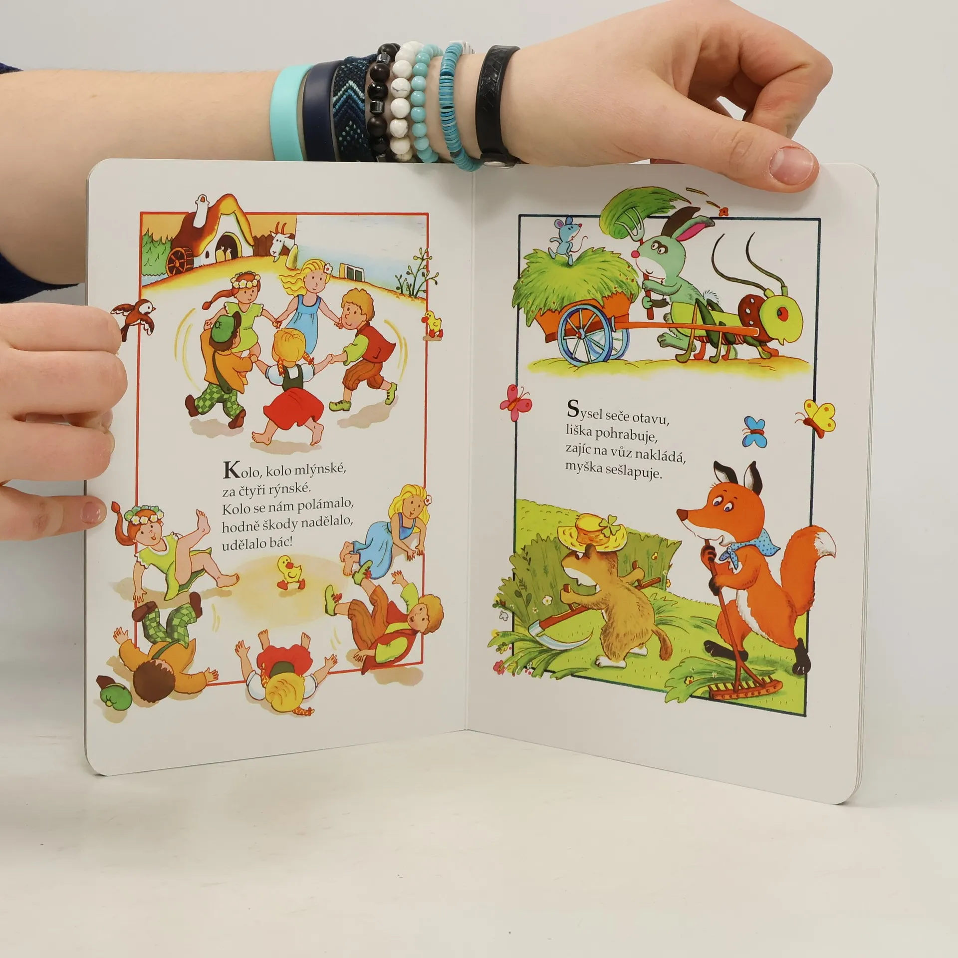 Leporelo nejznámějších říkadel pro malé děti s oblíbenými ilustracemi Adolfa Dudka.