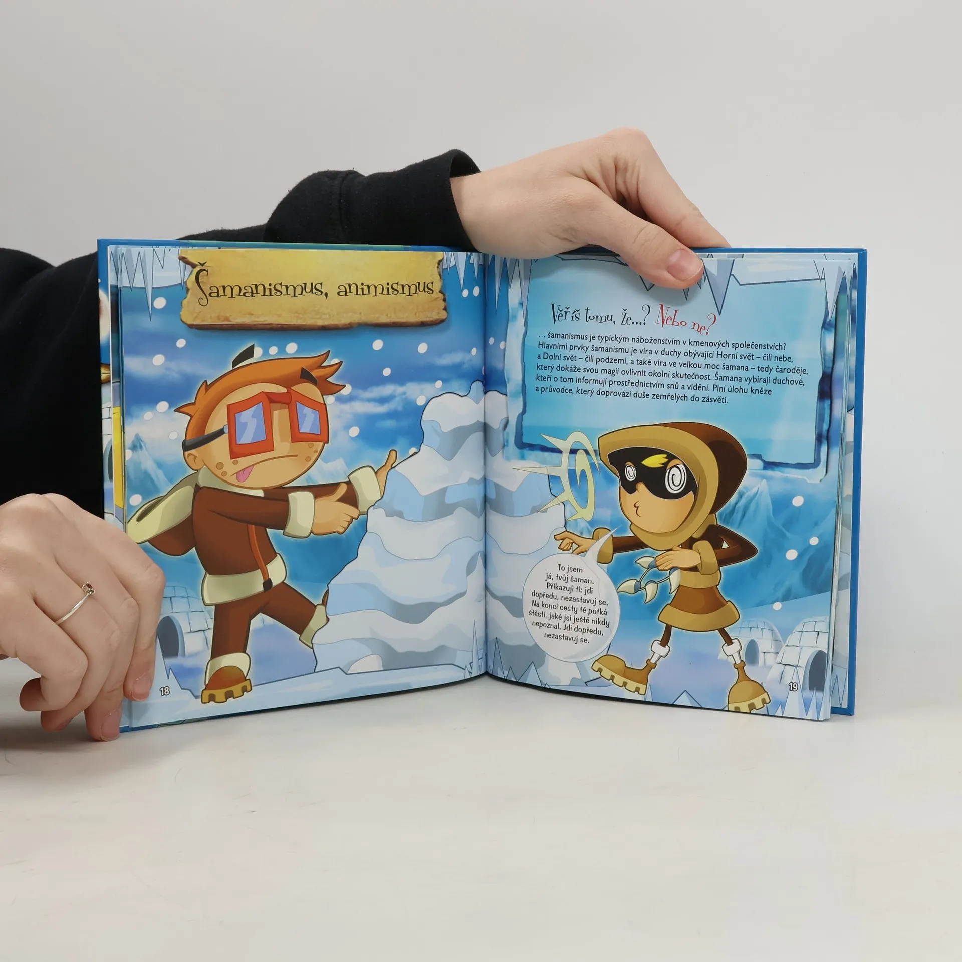 Knížka představuje život Eskymáků a zvířat v nejchladnějších koutech naší planety. Tentokrát přivítají Sandru a Pata Eskymáci a jejich ledové pláně. Spolu s nimi poznáte, jak se lidé na severu chrání proti štiplavému mrazu, jak se živí a zda ještě dnes někdo umí postavit opravdové iglú. Počítačová hra, která je součástí knížky, s knihou tématicky souvisí.