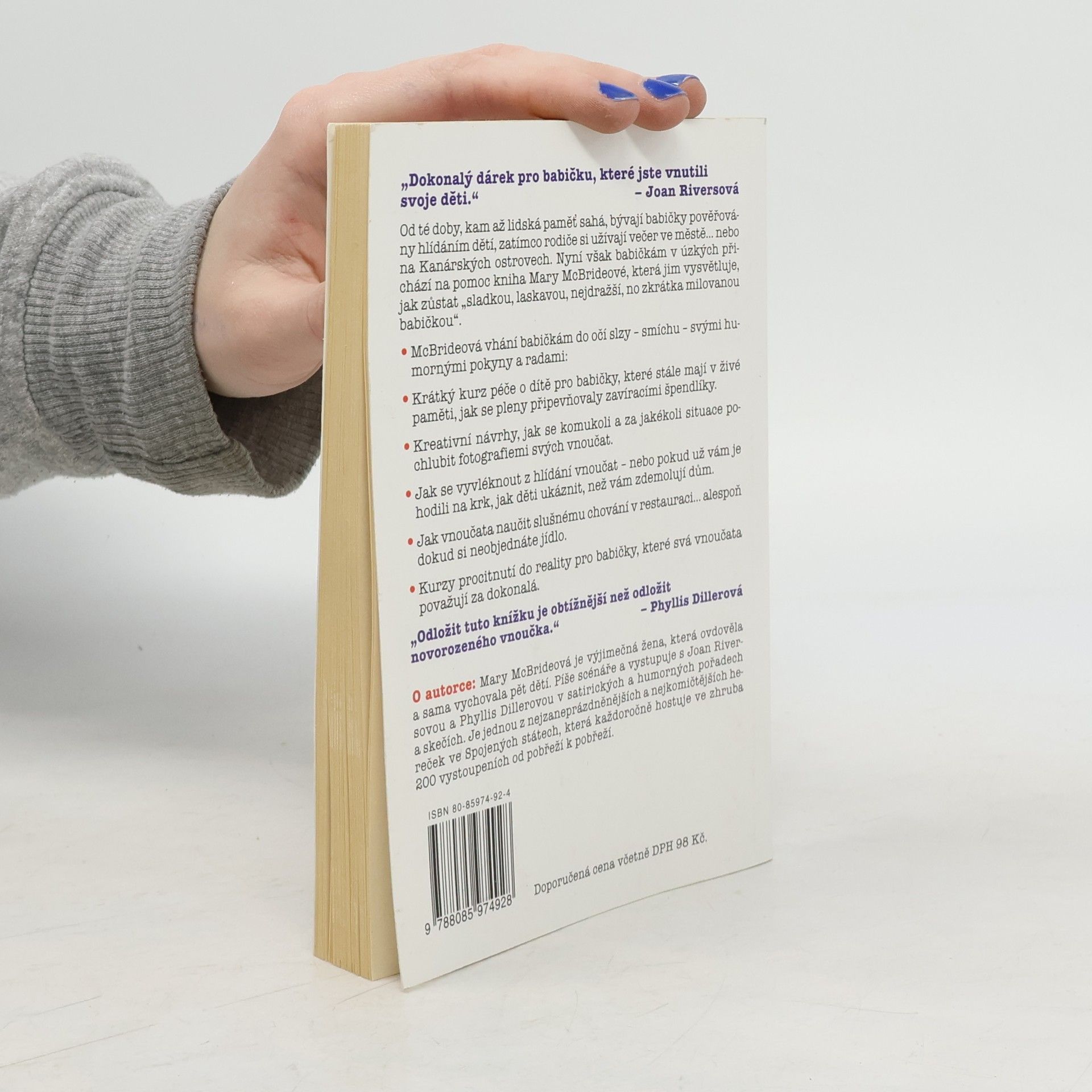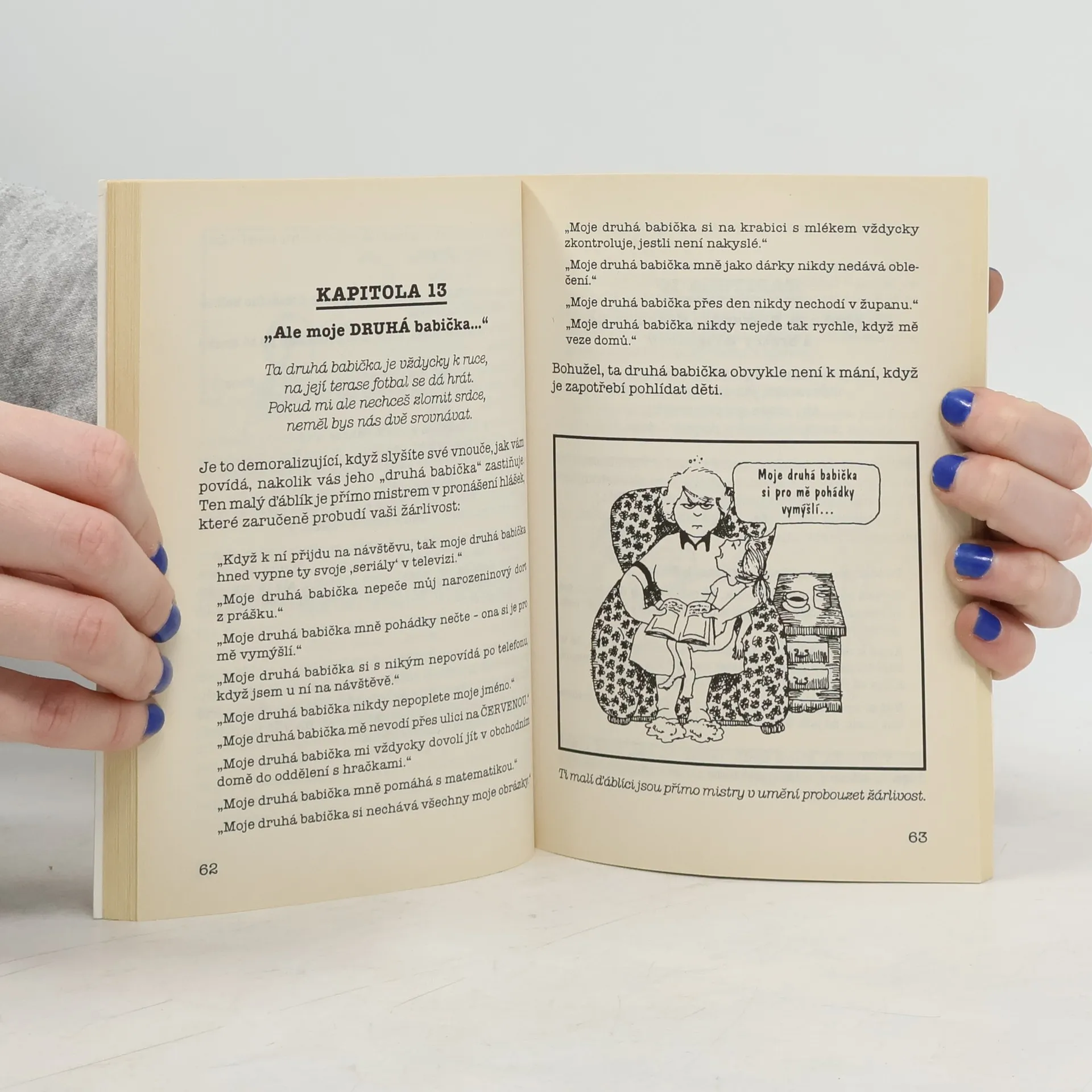 Od té doby, kam až lidská paměť sahá, bývají babičky pověřovány hlídáním dětí, zatímco rodiče si užívají večer ve městě... nebo na Kanárských ostrovech. Nyní však babičkám v úzkých přichází na pomoc kniha Mary McBrideové, která jim vysvětluje, jak zůstat "sladkou, laskavou, nejdražší, no zkrátka milovanou babičkou".