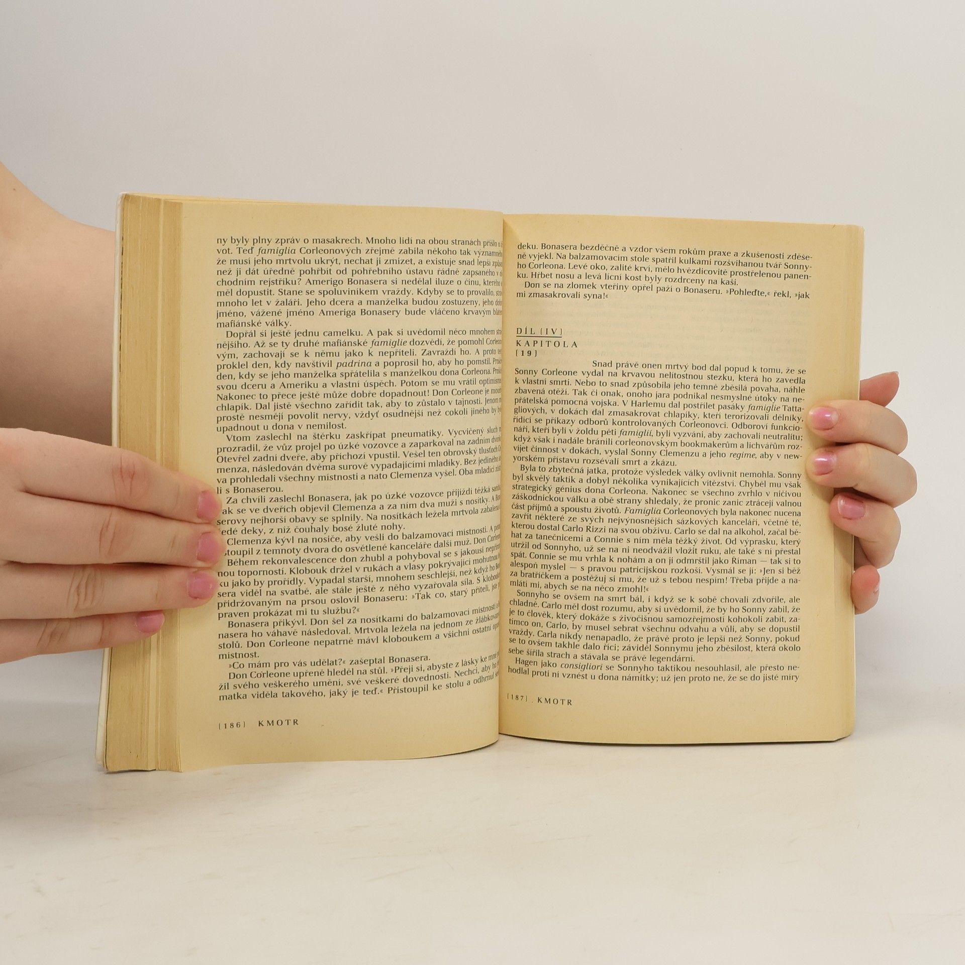 Když v roce 1969 vyšel v Americe poprvé, figuroval celých dvaadvacet týdnů na první příčce v seznamu bestsellerů. Znamenité, sugestivní dílo o bossovi všech bossů, jehož vliv sahal od policie až po finanční magnáty, si získalo popularitu především proto, že zachytilo klasickou mafii v konkrétní době a v místech, kde existuje dodnes. Tajemství rodinných svazků a zločinu vyvolalo zájem velkého množství čtenářů, podpořený i filmovým zpracováním, jež s Marlonem Brandem a Al Pacinem v hlavních rolích natočil Francis Ford Coppola."Americká sága" newyorského podsvětí detailně odkrývající přísně dodržovaná pravidla znovu oživuje historii krvavé války klanu Corleonů proti čtyřem dalším famigliím. Don Corleone, před nímž se třesou i ti nejmocnější, drží pevně všechny nitky vedoucí ke světu pašeráků, vyděračů i hazardních hráčů, kteří si podali ruku se zločinem a zákonem krevní msty. Čelit organizované zločinnosti financované špinavými penězi z obchodu s drogami a zneužívající bankovní systém však není jednoduché. Zvláště když mafiáni jednají v duchu hesla Questra guerra e cosa nostra - Tato válka je naše věc. Dnes už klasický román americké literatury 60. let nelítostně potvrzuje Balzakova slova: V pozadí každého velkého majetku je zločin.... celý text