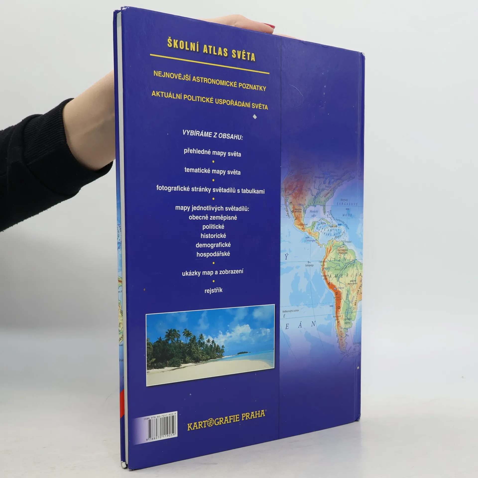 Nejnovější astronomické poznatky, aktuální politické uspořádání světa. Vybíráme z obsahu: přehledné mapy světa, tematické mapy světa, fotografické stránky světadílů s tabulkami, mapy jednotlivých světadílů: obecně zeměpisné, politické, historické, demografické, hospodářské; ukázky map a zobrazení, rejstřík. Druhé vydání.