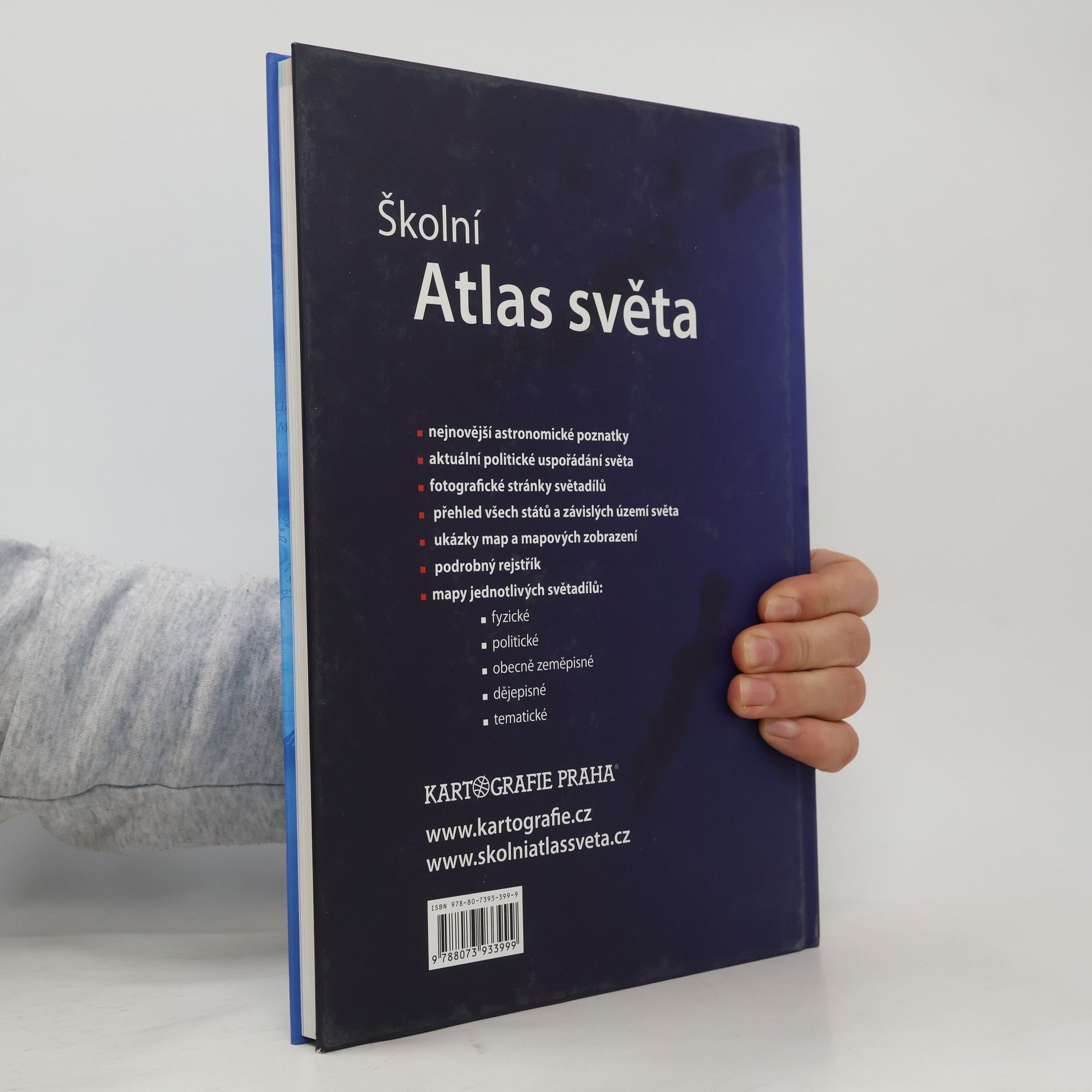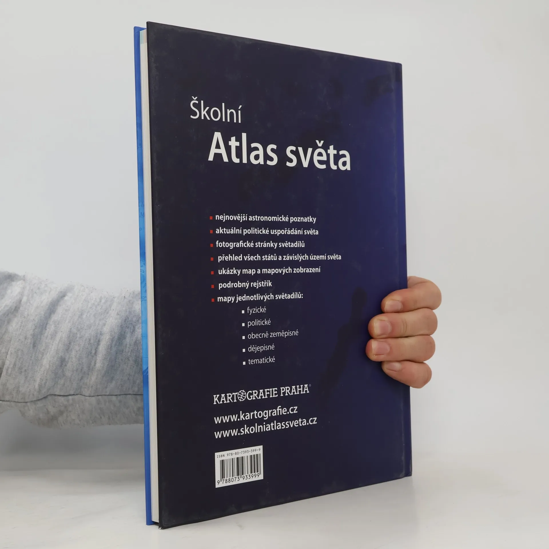 Nejprodávanější český školní atlas je univerzální pomůckou pro výuku zeměpisu na všech stupních škol. Atlas je rozdělen do tematických kapitol s barevným odlišením, což usnadňuje orientaci v mapách. Úvodní část obsahuje nejnovější astronomické poznatky o vesmíru a Sluneční soustavě. Následuje kapitola Svět s tematickými mapami zaměřenými na přírodu, obyvatelstvo, hospodářství a prostředí, v němž lidé žijí. Části věnované jednotlivým světadílům zahrnují podrobné obecně zeměpisné mapy s doplňujícími tematickými mapami a historickými mapami klíčových etap vývoje kontinentů, což umožňuje mezipředmětovou výuku. Mapovou část každého světadílu uvádějí fotografické stránky s charakterizujícím textem a tabulkou geografických údajů. Atlas obsahuje přehlednou tabulku všech států a závislých území světa, tabulky zeměpisných rekordů a rejstřík s více než 15 000 názvy. Čtvrté vydání navazuje na úspěšná vydání z let 2004, 2007 a 2011. Mezi novinky patří témata jako zaměstnanost žen, vzdělání, zdravotnictví a kvalita života, nové téma Ohniska napětí ve světě, fyzická a administrativní mapa Česka, podrobná mapa severní Asie a vylepšený znakový klíč obecně zeměpisných map pro lepší čitelnost.