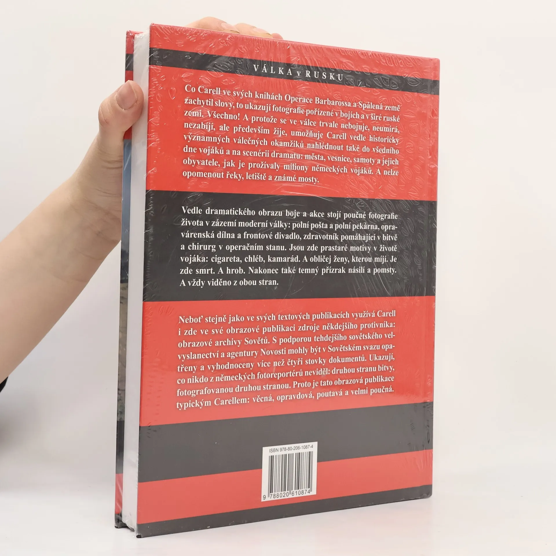 Co Carell ve svých knihách Operace Barbarossa a Spálená země zachytil slovy, to ukazují fotografie pořízené v bojích a v širé ruské zemi. Všechno! A protože se ve válce trvale nebojuje, neumírá, nezabíjí, ale především žije, umožňuje Carell vedle historicky významných válečných okamžiků nahlédnout také do všedního dne vojáků a na scenérii dramatu: města, vesnice, samoty a jejich obyvatele, jak je prožívaly miliony německých vojáků.