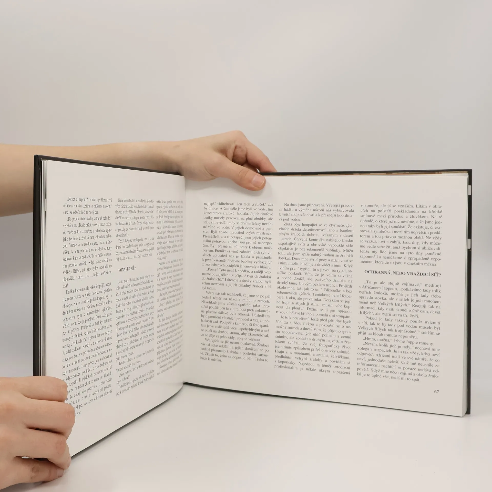 TIGER SHARK - hyena moří je doposud jedinou knihou na světě zabývající se podrobně chováním tygřího žraloka. Je první knihou přinášející jak odborný popis tak i příběh filmařského týmu, který po dobu jednoho roku pracoval s druhým nejnebezpečnějším žralokem světa - tygřím. S hyenou moří, jak je tento predátor nazýván, vznikaly filmy, fotografie a i tato kniha. Ponory mezi padesáti žraloky přinášejí neočekávané situace a potápěči mají plné ruce práce, aby se dokázali rozdrážděné smečce bránit. Tygr má jednu velmi nebezpečnou vlastnost - je zvědavý a příliš často přichází ochutnat něco nebo někoho.
