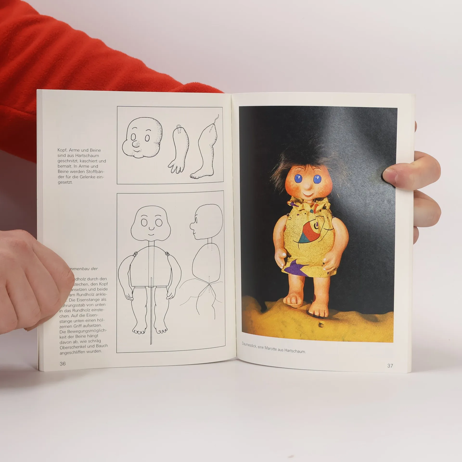 Knapp beschriebene Anregungen mit guten Skizzen zur Herstellung von Stabpuppen (von unten geführt), die aus einfachsten Materialien - auch von Kindern - gebastelt werden können.