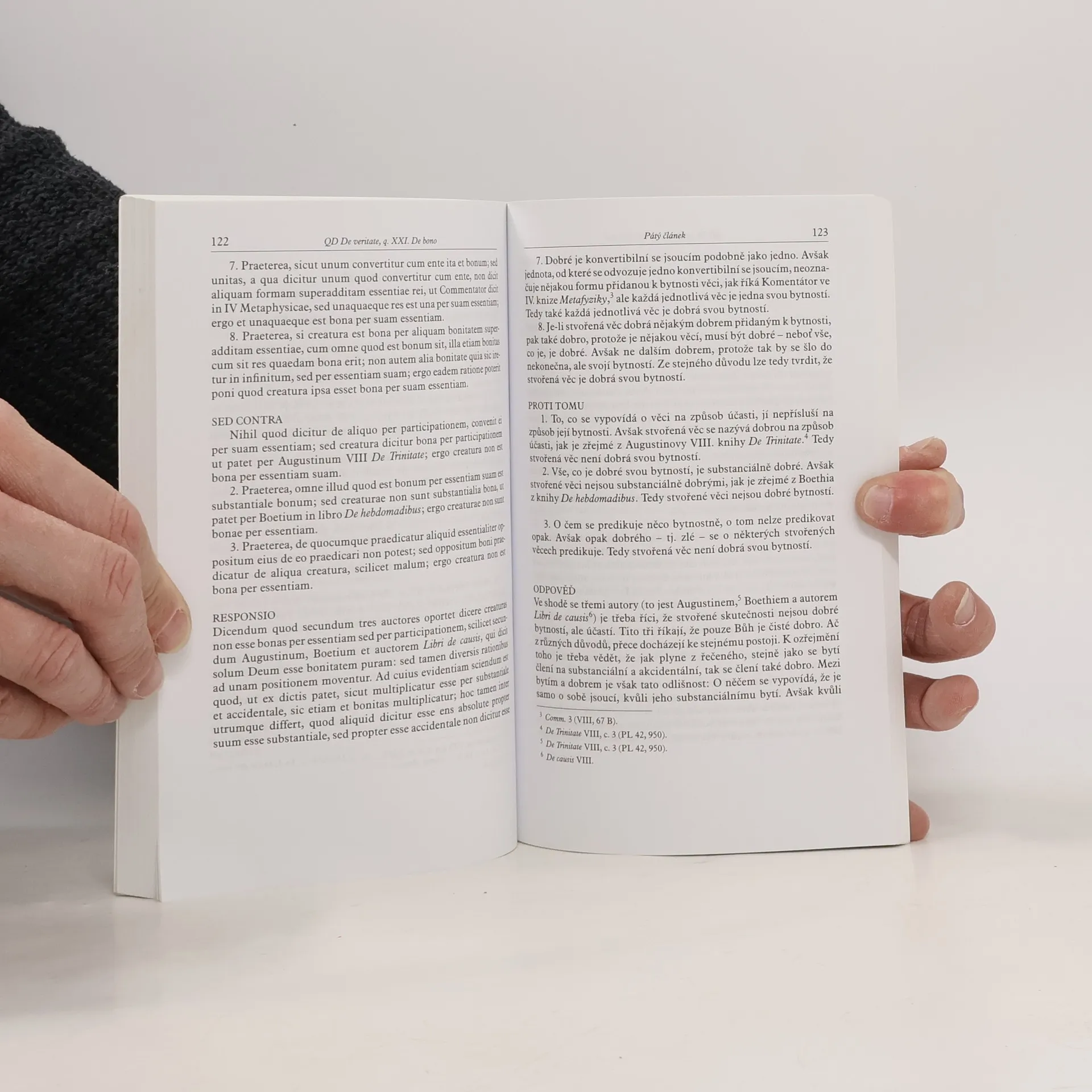 Otázka dobra patří k základním tématům, kterými se středověcí učenci zabývali. Tomáš Akvinský zpracoval téma dobra ve dvou svých spisech: ve XXI. otázce souboru Quaestiones Disputatae De veritate a ve svém komentáři Boëthiova spisu De ebdomadibus. Obě pojednání jsou představena v této publikaci spolu s úvodní studií, která zařazuje Tomášúv koncept dobra do souvislostí dobových diskuzí. Jako první otevřel otázku dobra již svatý Augustin, který se snažil pochopit původ zla ve stvoření: pokud je Bůh, Stvořitel všeho, Prvním dobrem, pak vše stvořené, nakolik má své bytí od Prvního dobra, musí být dobré. V rámci stvoření proto nelze mluvit o zlu. Boëthius ve svém spisu De ebdomadibus navazuje na sv. Augustina a vysvětluje, jakým způsobem jsou věci dobré. Tomáš Akvinský v otázce O dobru představuje své vlastní pojetí dobra. Navazuje na svého učitele Alberta Velikého a propracovává do důsledku Albertovu teorii, že dobro přidává jsoucímu něco pouze pojmově. Tomáš posouvá tradiční pojetí dobra a definuje ho jako vztah k bytí. Ve svém Komentáři k De ebdomadibus ukazuje, že takto pojaté dobro neztrácí žádný z požadavků, které na něho tradice klade.