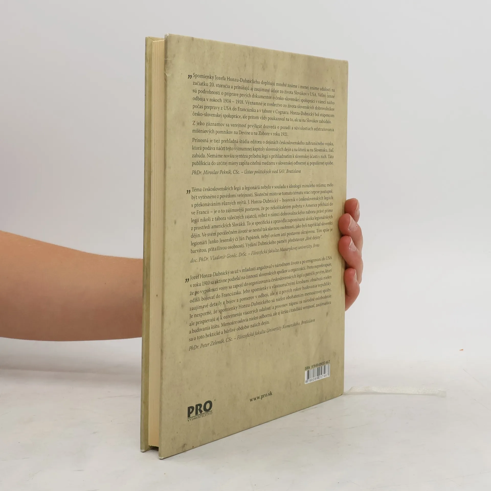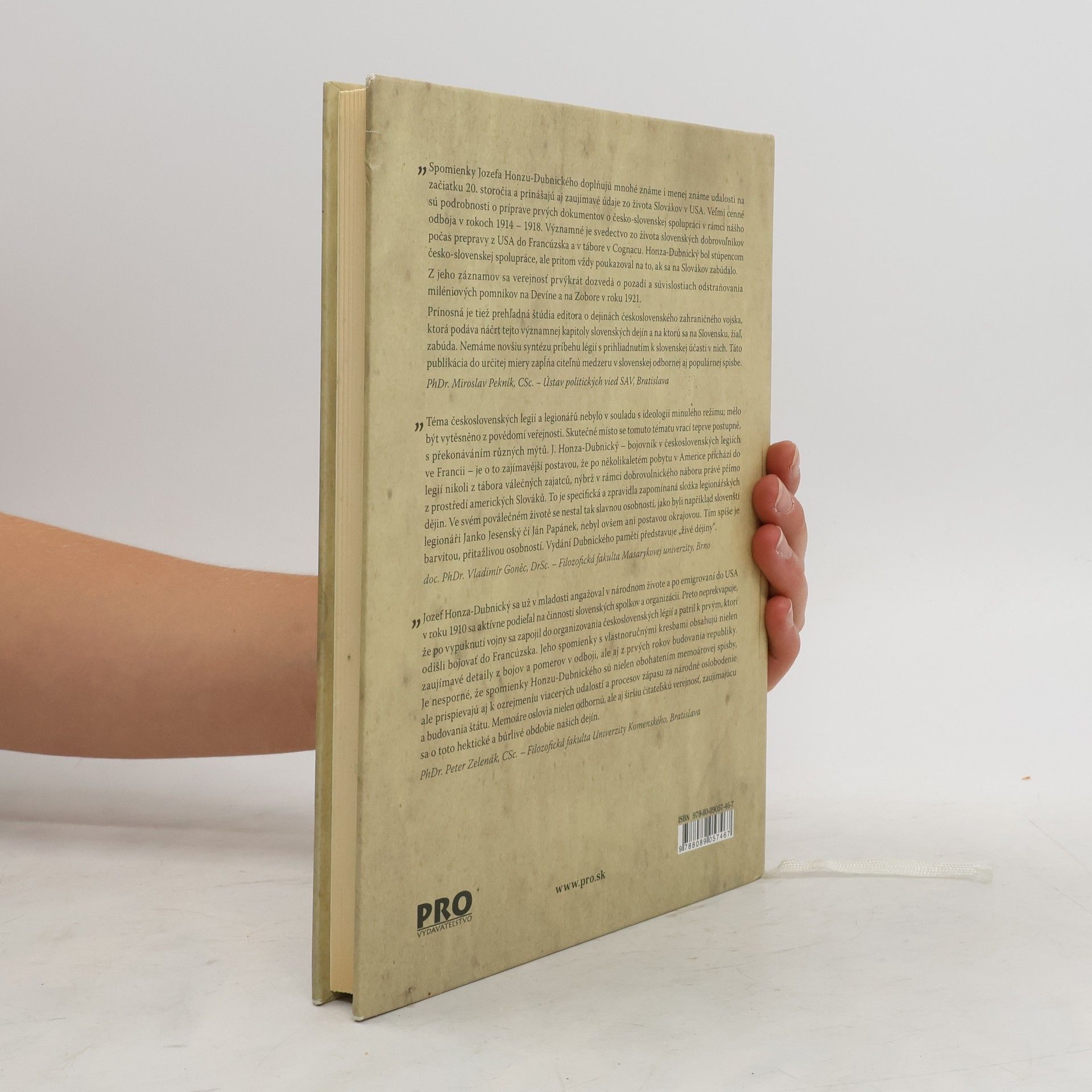V archíve sa objavili neobyčajné zápisky, ktoré oživujú osobnosť Jozefa Honzu-Dubnického, človeka, ktorý venoval veľkú časť svojho života druhým. Na začiatku 20. storočia aktívne spolupracoval so slovenskými buditeľmi, šíril národnú osvetu a organizoval kultúrne spolky. V Amerike sa stretol s významnými predstaviteľmi česko-slovenského exilu, ako M.R. Štefánik a T.G. Masaryk. Bol veliteľom prvej výpravy slovenských a českých dobrovoľníkov a členom československých légií vo Francúzsku, kde sa stýkal s E. Benešom a ďalšími aktérmi prvého odboja. Po vzniku Československej republiky riadil Propagačnú a neskôr Spravodajskú kanceláriu pod vedením Dr. V. Šrobára. Jeho životný príbeh je vzrušujúci a plný historických súvislostí. Honza-Dubnický bol zástancom česko-slovenskej spolupráce, pričom upozorňoval na zabúdanie na Slovákov. Z jeho záznamov sa verejnosť dozvedá o odstraňovaní miléniových pomníkov na Devíne a Zobore v roku 1921. Vhodne zapadá do spomienok na sté výročie začatia 1. svetovej vojny aj prehľadná štúdia o dejinách československého zahraničného vojska, ktorá osvetľuje významnú kapitolu slovenskej histórie. Téma čs. légií bola v minulosti potlačená, a preto táto kniha zapĺňa medzeru v našej historiografii.
