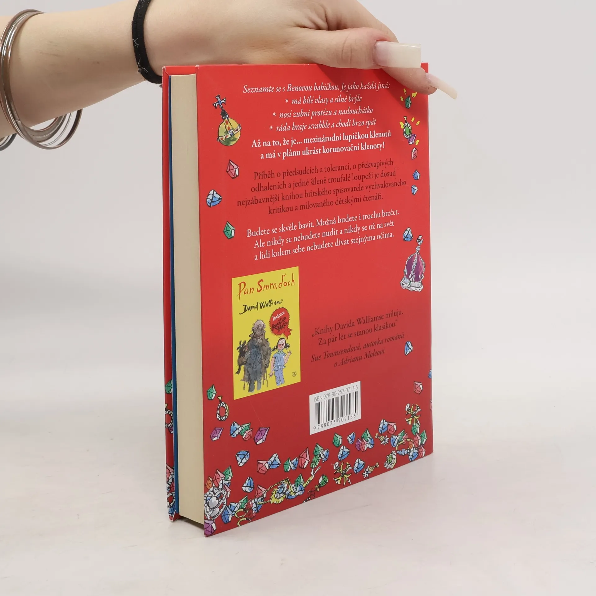 Britského autora dětských knih Davida Walliamse označují kritici za nového Roalda Dahla. Jeho vypravěčsky brilantní příběhy s překvapivou pointou a černým humorem dávají tomuto označení za pravdu. Jako první se k českému čtenáři dostává Babička drsňačka. Vypráví se v ní příběh o předsudcích a toleranci, o překvapivých odhaleních a jedné šíleně troufalé loupeži. Ben je k smrti otrávený, zase má strávit víkend u babičky: "Vždyť je s ní děsná nuda! Se všema starýma je nuda. Telka jí nefunguje, pořád chce jenom hrát scrabble a smrdí kapustou!" Pěkně tvrdý odsudek z úst nezletilce, jenže to ještě Ben netuší dvě věci: 1) Jeho babička kdysi byla proslulou lupičkou šperků. 2) Celý život kula plán, jak ukradnout korunovační klenoty, a teď potřebuje Benovu pomoc!