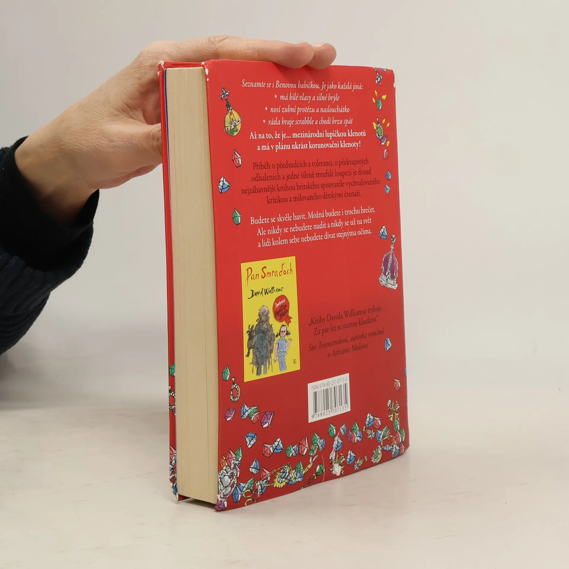 Britského autora dětských knih Davida Walliamse označují kritici za nového Roalda Dahla. Jeho vypravěčsky brilantní příběhy s překvapivou pointou a černým humorem dávají tomuto označení za pravdu. Jako první se k českému čtenáři dostává Babička drsňačka. Vypráví se v ní příběh o předsudcích a toleranci, o překvapivých odhaleních a jedné šíleně troufalé loupeži. Ben je k smrti otrávený, zase má strávit víkend u babičky: "Vždyť je s ní děsná nuda! Se všema starýma je nuda. Telka jí nefunguje, pořád chce jenom hrát scrabble a smrdí kapustou!" Pěkně tvrdý odsudek z úst nezletilce, jenže to ještě Ben netuší dvě věci: 1) Jeho babička kdysi byla proslulou lupičkou šperků. 2) Celý život kula plán, jak ukradnout korunovační klenoty, a teď potřebuje Benovu pomoc!