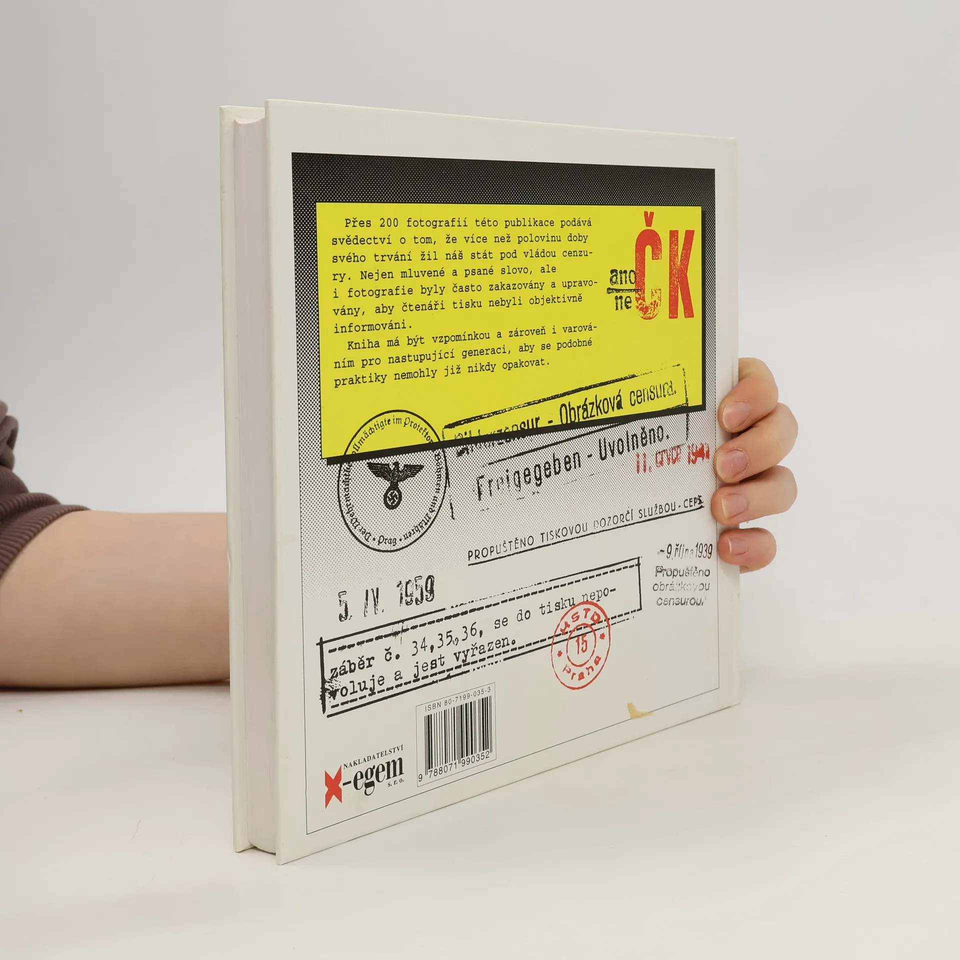Přes 200 fotografií této publikace podává svědectví o tom, že více než polovinu doby svého trvání žil náš stát pod vládou cenzury. Nejen mluvené a psané slovo, ale i fotografie byly často zakazovány a upravovány, aby čtenáři tisku nebyli objektivně informováni.
