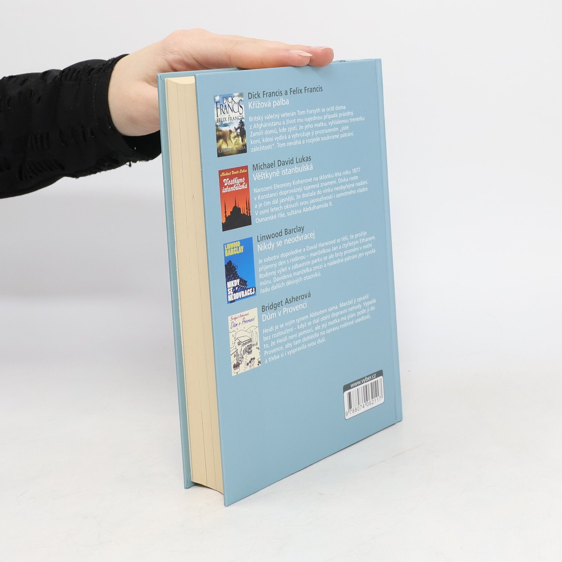 Svazek obsahuje zkrácené verze čtyř úspěšných románů oddychových žánrů od současných angloamerických autorů. Jednotlivé tituly jsou doplněny stručnými informacemi o jejich tvůrcích. Dick Francis a Felix Francis: Křížová palba Britský válečný veterán Tom Forsyth se ocitl doma z Afghánistánu a život mu najednou připadá prázdný. Zamíří domů, kde zjistí, že jeho matku, vyhlášenou trenérku koní, kdosi vydírá a vyhrožuje jí prozrazením „jisté záležitosti“. Tom neváhá a rozjede soukromé pátrání. Michael David Lukas: Věštkyně istanbulská Narození Eleonory Kohenové na sklonku léta roku 1877 v Konstanci doprovázejí tajemná znamení. Dívka roste a je čím dál jasnější, že dostala do vínku neobyčejné nadání. V osmi letech okouzlí svou jasnozřivostí i samotného vládce Osmanské říše, sultána Abdulhamida II. Linwood Barclay: Nikdy se neodvracej Je sobotní dopoledne a David Harwood se těší, že prožije příjemný den s rodinou – manželkou Jan a čtyřletým Ethanem. Rodinný výlet v zábavním parku se ale brzy promění v noční můru. Davidova manželka zmizí a následné pátrání jen vyvolá řadu dalších děsivých otazníků. Bridget Asherová: Dům v Provenci Heidi je se svým synem Abbotem sama. Manžel ji opustil bez rozloučení – když se stal obětí dopravní nehody. Vypadá to, že Heidi není pomoci, ale její matka má plán: pošle ji do Provence, aby tam dohlédla na opravu rodinné usedlosti, a třeba si i vyspravila svou duši.