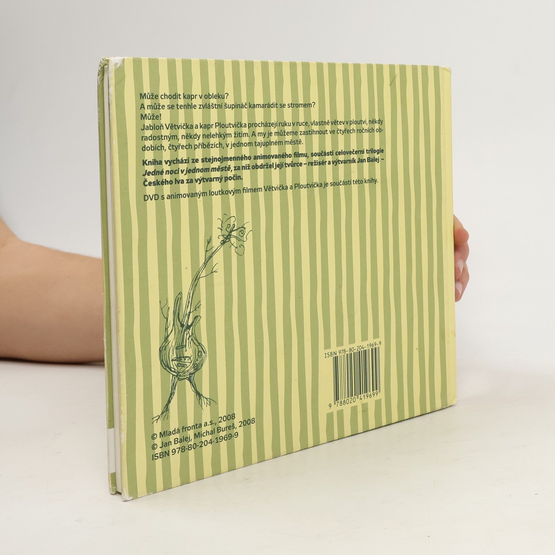 Může chodit kapr v obleku? A Může se tehhle zvláštní šupináč kamarádit se stromem? Může! Jabloň Větvička a kapr Ploutvička procházejí ruku v ruce, vlastně větev v ploutvi, někdy radostným, někdy nelehkým žitím. A my je můžeme zastihnout ve čtyřech ročních obdobích, čtyřech příbězích, v jednom tajuplném městě.