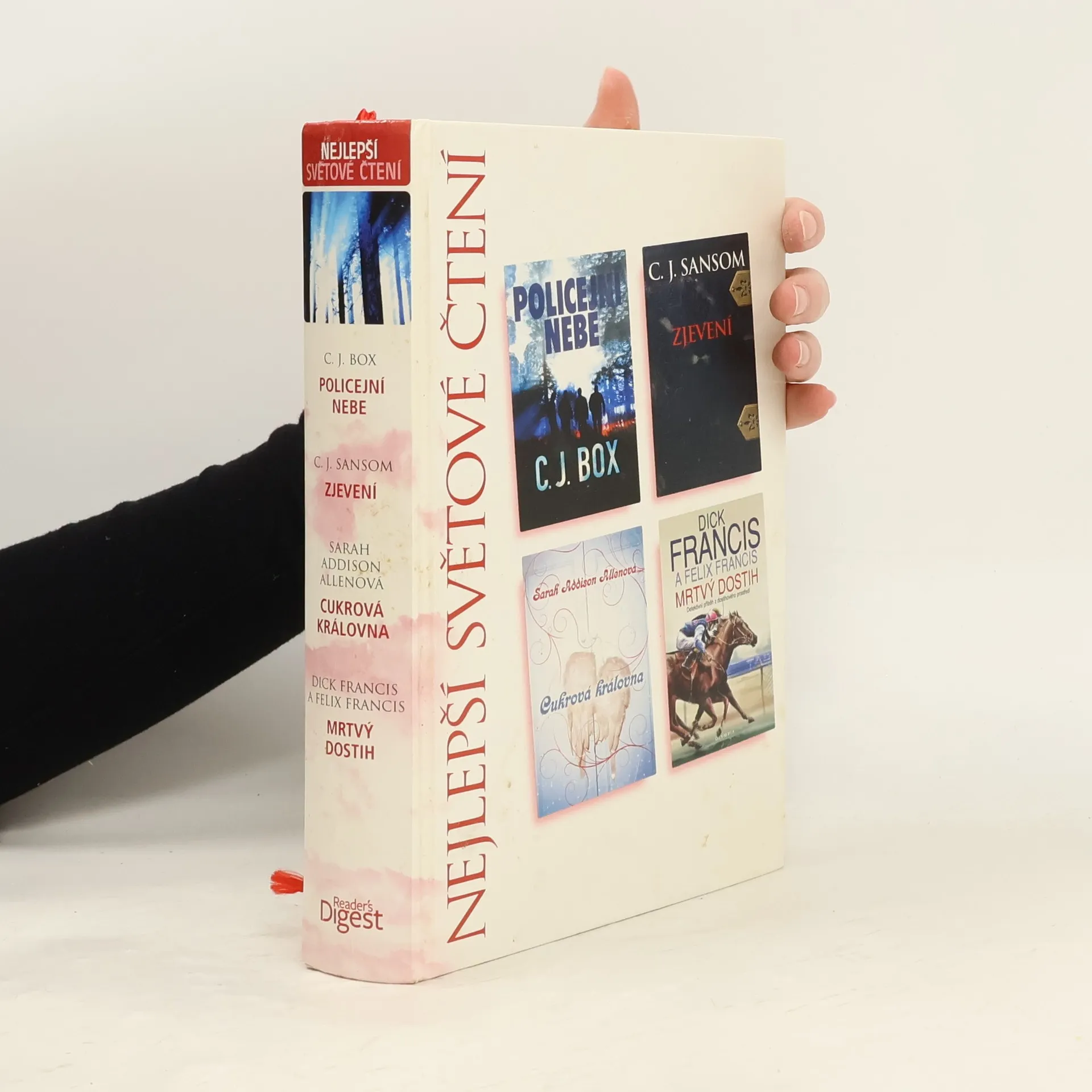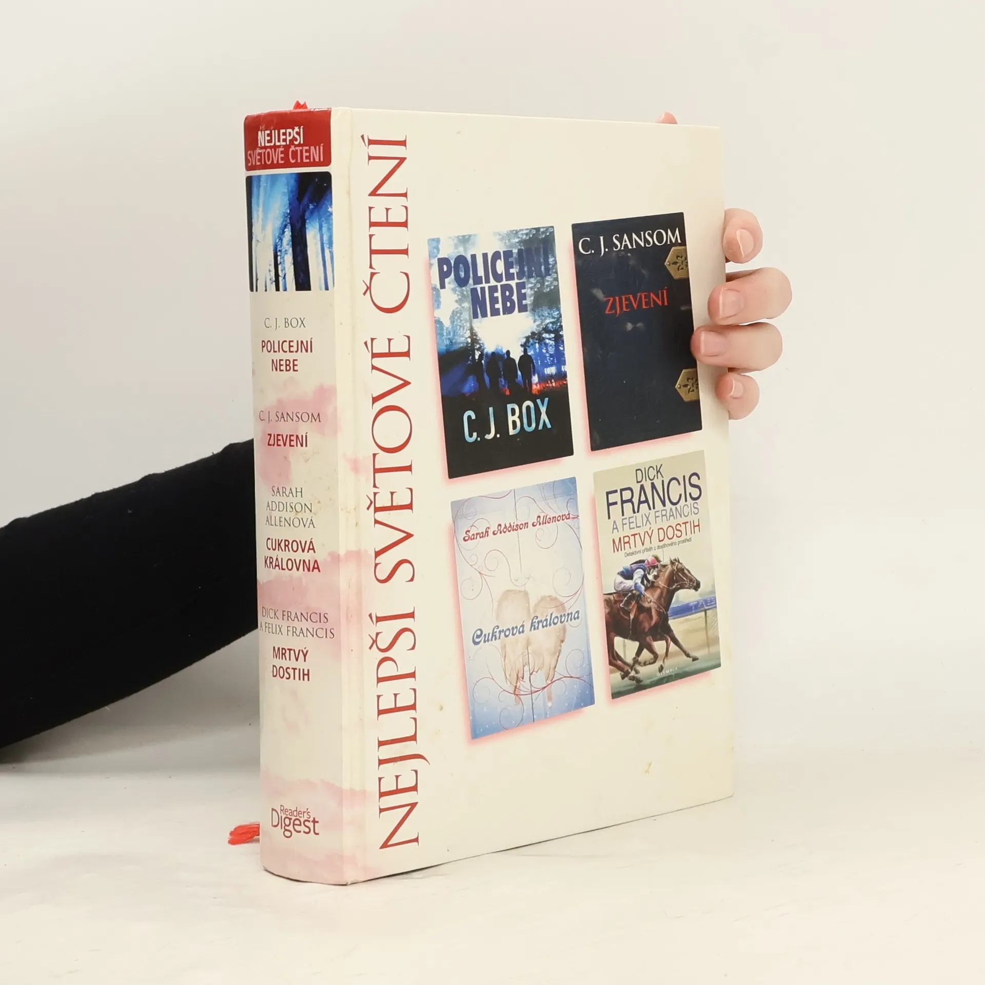Policejní nebe, Zjevení, Cukrová královna, Mrtvý dostih, C. J. Box, C. J. Sansom, Sarah Addison Allen, Dick Francis, Felix Francis