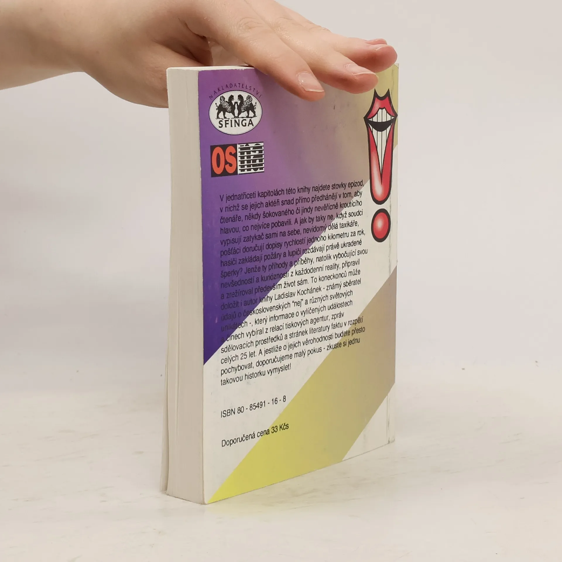 V jednatřiceti kapitolách této knihy najdete stovky epizod, v nichž se jejich aktéři snad přímo předhánějí v tom, aby čtenáře, někdy šokovaného či jindy nevěřícně kroutícího hlavou, co nejvíce pobavili. A jak by taky ne, když soudci vypisují zatykač sami na sebe, nevidomý dělá taxikáře, pošťáci doručují dopisy rychlostí jednoho kilometru za rok, hasiči zakládají požáry a lupiči rozdávají právě ukradené šperky? Jenže ty příhody a příběhy, natolik vybočující svou nevšedností a kuriózností z každodenní reality, připravil a zrežíroval především život sám. To koneckonců může doložit i autor knihy Ladislav Kochánek (známý sběratel o československcýh "nej" a různých světových unikátech), který informace o vylíčených událostech a činech vybíral z relací tiskových agentur, zpráv sdělovacích prostředků a stránek literatury faktu v rozpětí celých 25 let. A jestliže o jejich věrohodnosti budete přesto pochybovat, doporučujeme malý pokus - zkuste si jednu takovou historku vymyslet!