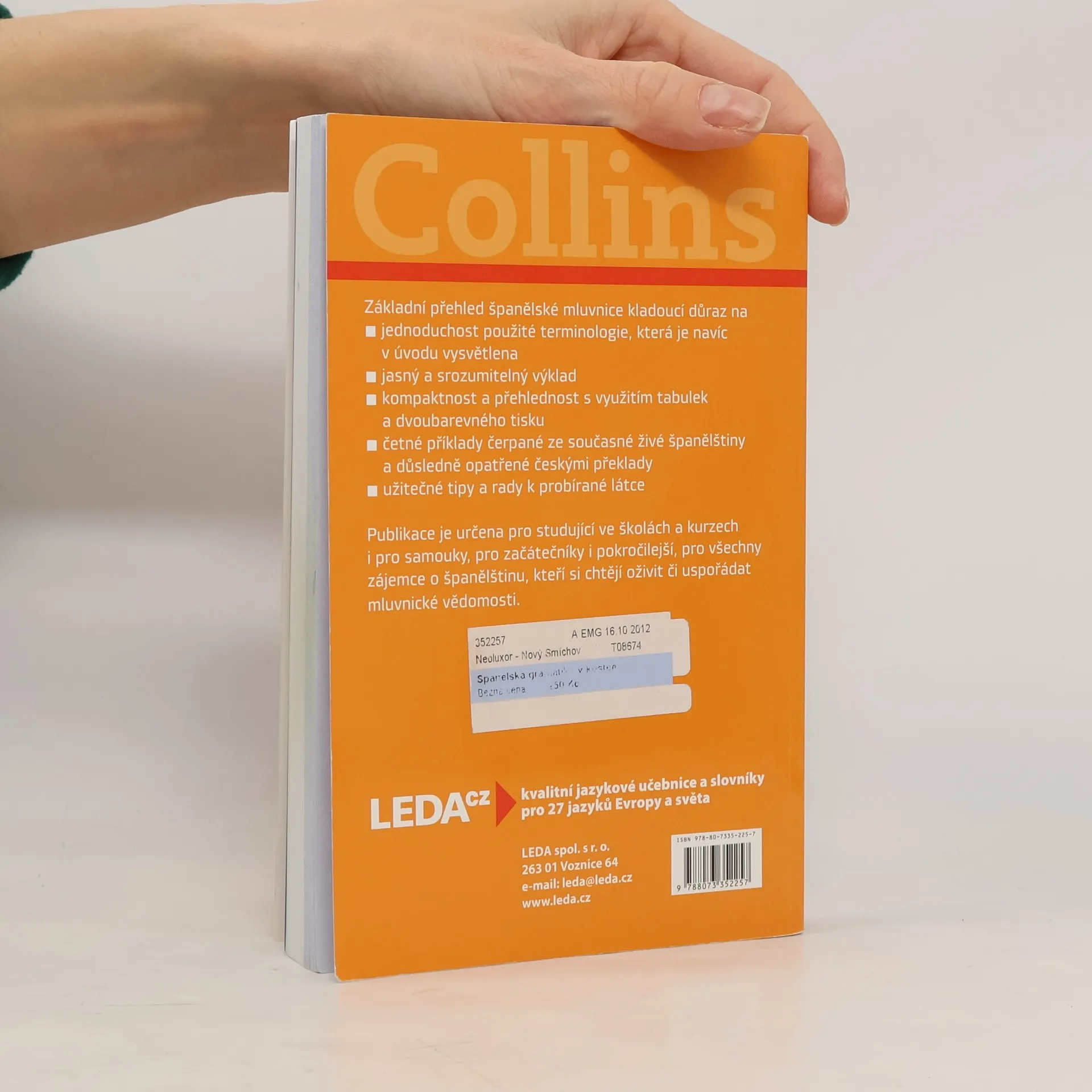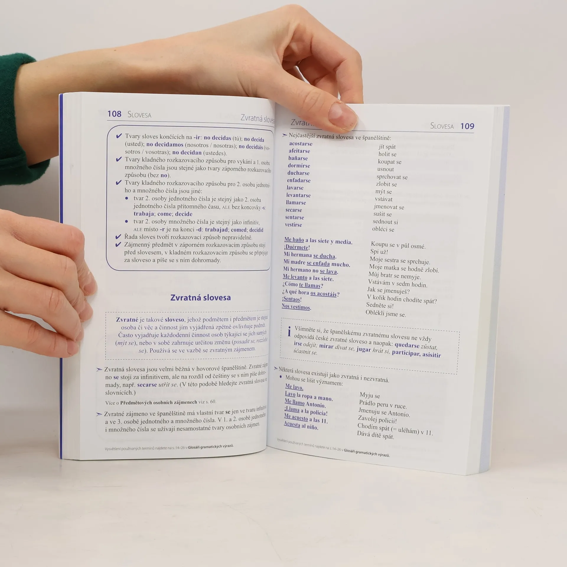 Základní přehled španělské mluvnice kladoucí důraz na jednoduchost použité terminologie, která je navíc v úvodu vysvětlena, jasný, srozumitelný výklad a přehlednost, jíž napomáhá využití tabulek a dvoubarevný tisk. Výklad provázejí četné názorné příklady čerpané ze současné živé španělštiny a důsledně opatřené českými překlady. U jednotlivých gramatických jevů jsou uváděny tipy a praktické rady, které napomáhají zapamatování nebo upozorňují na důležité souvislosti. Publikace je určena pro studující ve školách a kursech i pro samouky, a to pro začátečníky i pokročilejší, dále pro všechny zájemce o španělštinu, kteří si chtějí oživit či uspořádat mluvnické vědomosti.