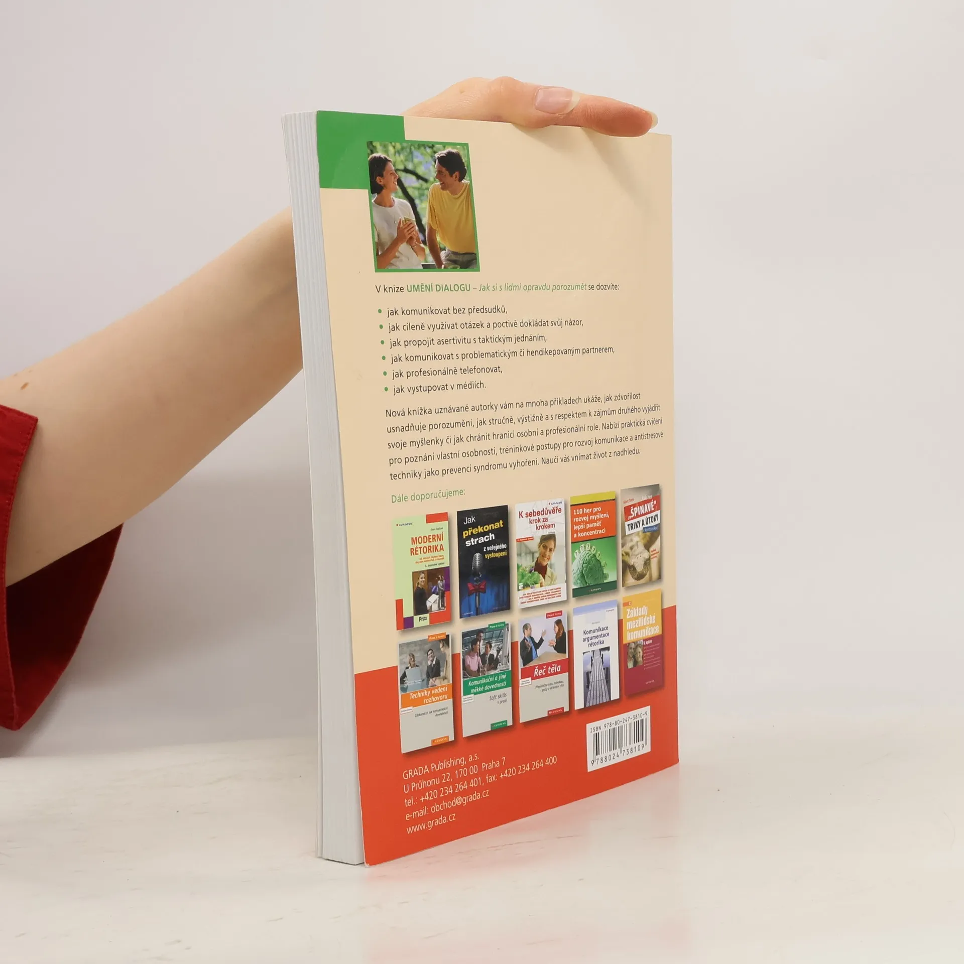 V knize UMĚNÍ DIALOGU - Jak si s lidmi opravdu porozumět se dozvíte: * jak komunikovat bez předsudků, * jak cíleně využívat otázek a poctivě dokládat svůj názor, * jak propojit asertivitu s taktickým jednáním, * jak komunikovat s problematickým či hendikepovaným partnerem, * jak profesionálně telefonovat, * jak vystupovat v médiích. Nová knížka uznávané autorky vám na mnoha příkladech ukáže, jak zdvořilost usnadňuje porozumění, jak stručně, výstižně a s respektem k zájmům druhého vyjádřit svoje myšlenky či jak chránit hranici osobní a profesionální role. Nabízí praktická cvičení pro poznání vlastní osobnosti, tréninkové postupy pro rozvoj komunikace a antistresové techniky jako prevenci syndromu vyhoření. Naučí vás vnímat život z nadhledu.