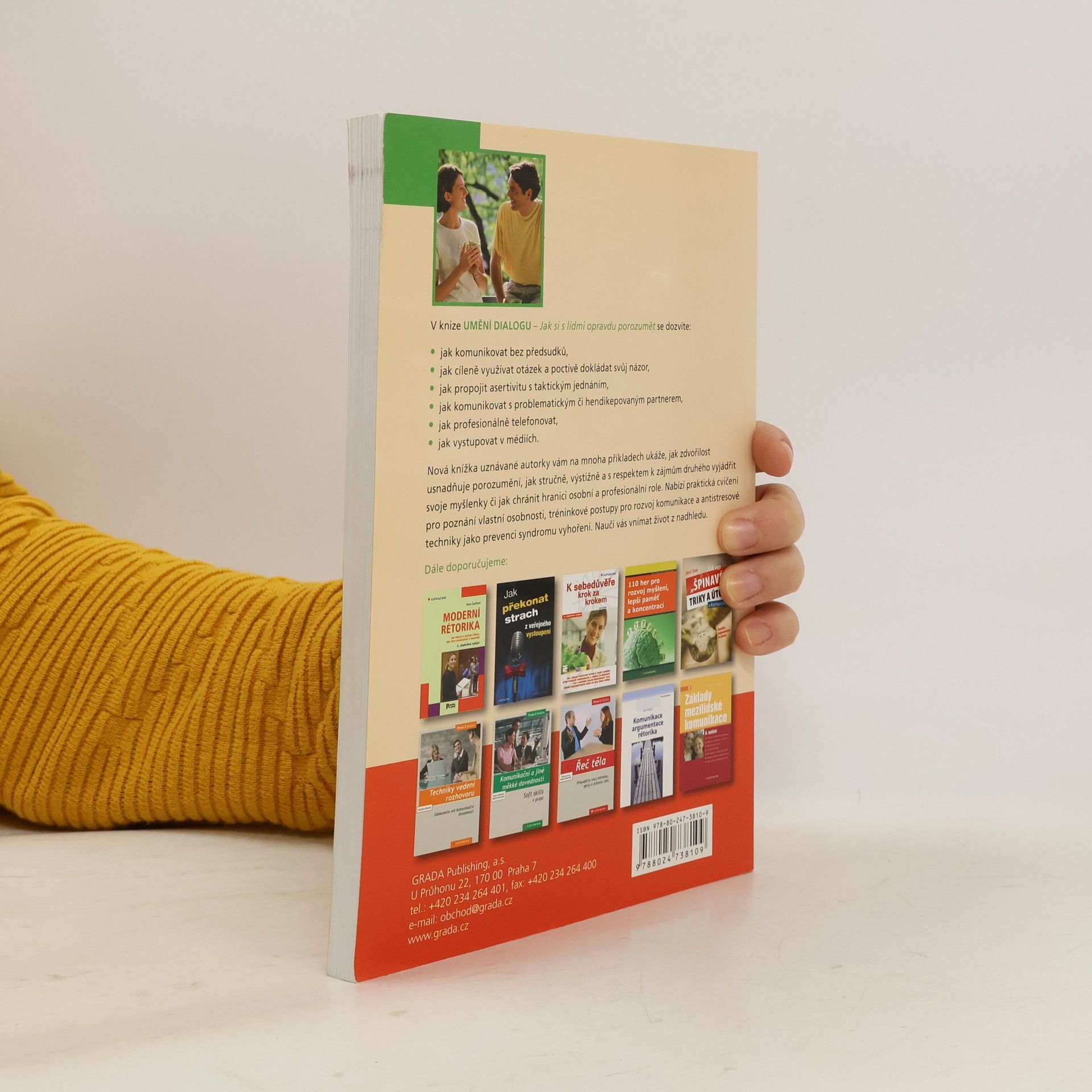 V knize UMĚNÍ DIALOGU - Jak si s lidmi opravdu porozumět se dozvíte: * jak komunikovat bez předsudků, * jak cíleně využívat otázek a poctivě dokládat svůj názor, * jak propojit asertivitu s taktickým jednáním, * jak komunikovat s problematickým či hendikepovaným partnerem, * jak profesionálně telefonovat, * jak vystupovat v médiích. Nová knížka uznávané autorky vám na mnoha příkladech ukáže, jak zdvořilost usnadňuje porozumění, jak stručně, výstižně a s respektem k zájmům druhého vyjádřit svoje myšlenky či jak chránit hranici osobní a profesionální role. Nabízí praktická cvičení pro poznání vlastní osobnosti, tréninkové postupy pro rozvoj komunikace a antistresové techniky jako prevenci syndromu vyhoření. Naučí vás vnímat život z nadhledu.