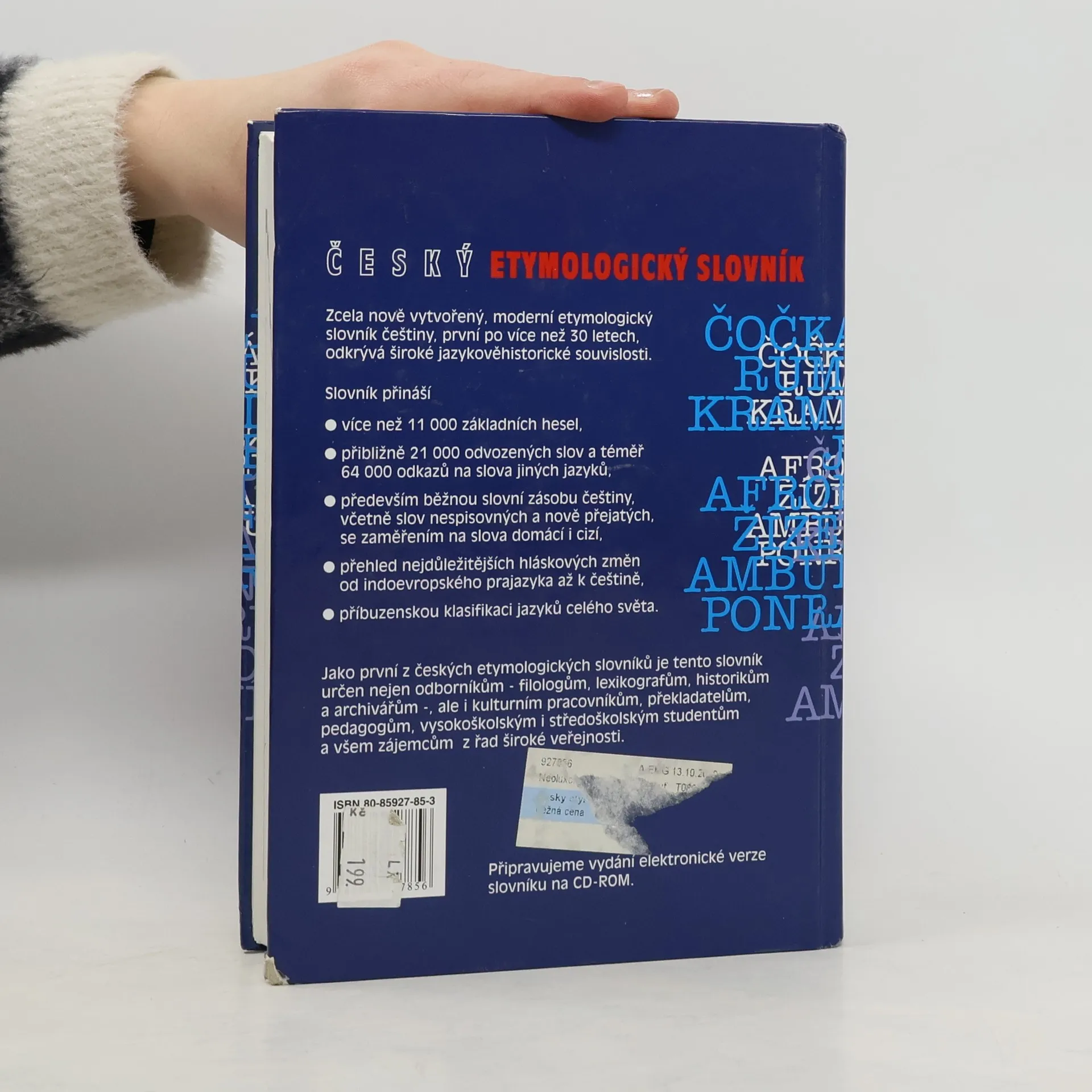 Nový český etymologický slovník pro širší veřejnost se na rozdíl od svých předchůdců věnuje sejnou měrou slovům domácím i cizím a navíc zařazuje i některá dosud opomíjená slova nespisovná. Úsporným, ale hutným způsobem se snaží co nejúplněji postihnou historii slov i jejich etymologické souvislosti. Slovník přináší více než 11 000 základních hesel, z nichž jsou uváděny i jejich odvozeniny a asi 20 000 odkazů na slova jiných jazyků. Pro snazší orientaci čtenáře je ke slovníku připojen přehled jazyků celého světa a přehled nejdůležitějších hláskoslovných změn od indoevropského prajazyka až k současnosti.