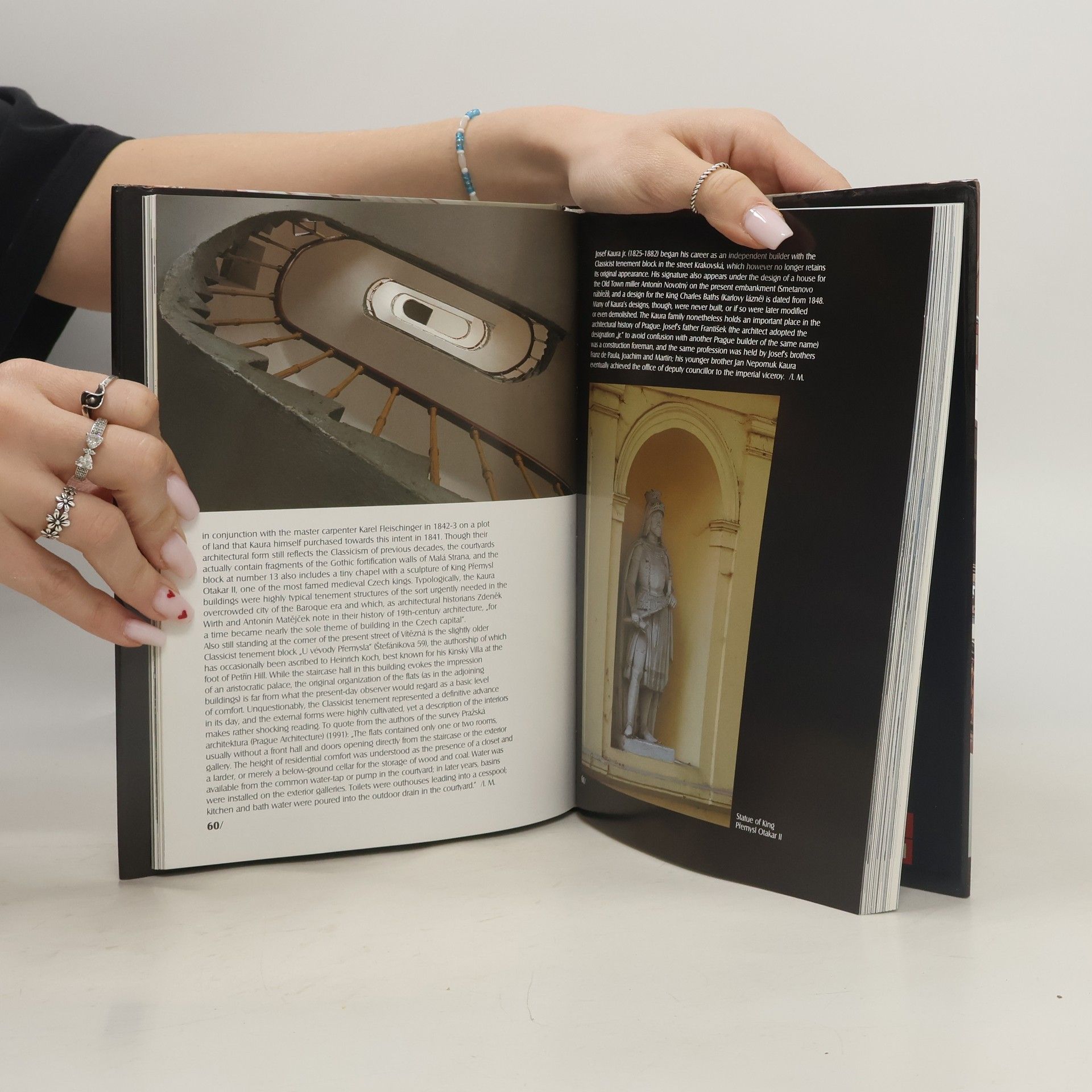 Jako by krok za krokem, tak, jak to časová přímka, táhnoucí se dějinami, naznačuje, vyrůstá v publikaci Slavné stavby Prahy 5 postupně, jedna za druhou, padesát čtyři staveb, které k páté pražské městské části neodmyslitelně patří, přičemž první objekt – kostel sv. Vavřince v Jinonicích (Butovicích) pochází asi z 11. století a poslední – ústředí ČSOB v Radlicích nese vročení dokonce už budoucí, léta 2006 až 2007. Před čtenářem defilují stavby církevní, světské, průmyslové, administrativní, společenské, nájemní domy, vily, nechybí například Petržílkovská malostranská vodárna, Švandovo divadlo, zámeček baronky Ronghofferové, mosty přes Vltavu, barrandovský „pahorek snů“, nyní už propojený novou tramvajovou linkou, a samozřejmě ani dílo francouzského architekta Jeana Nouvela vytvořené na křižovatce Anděl.