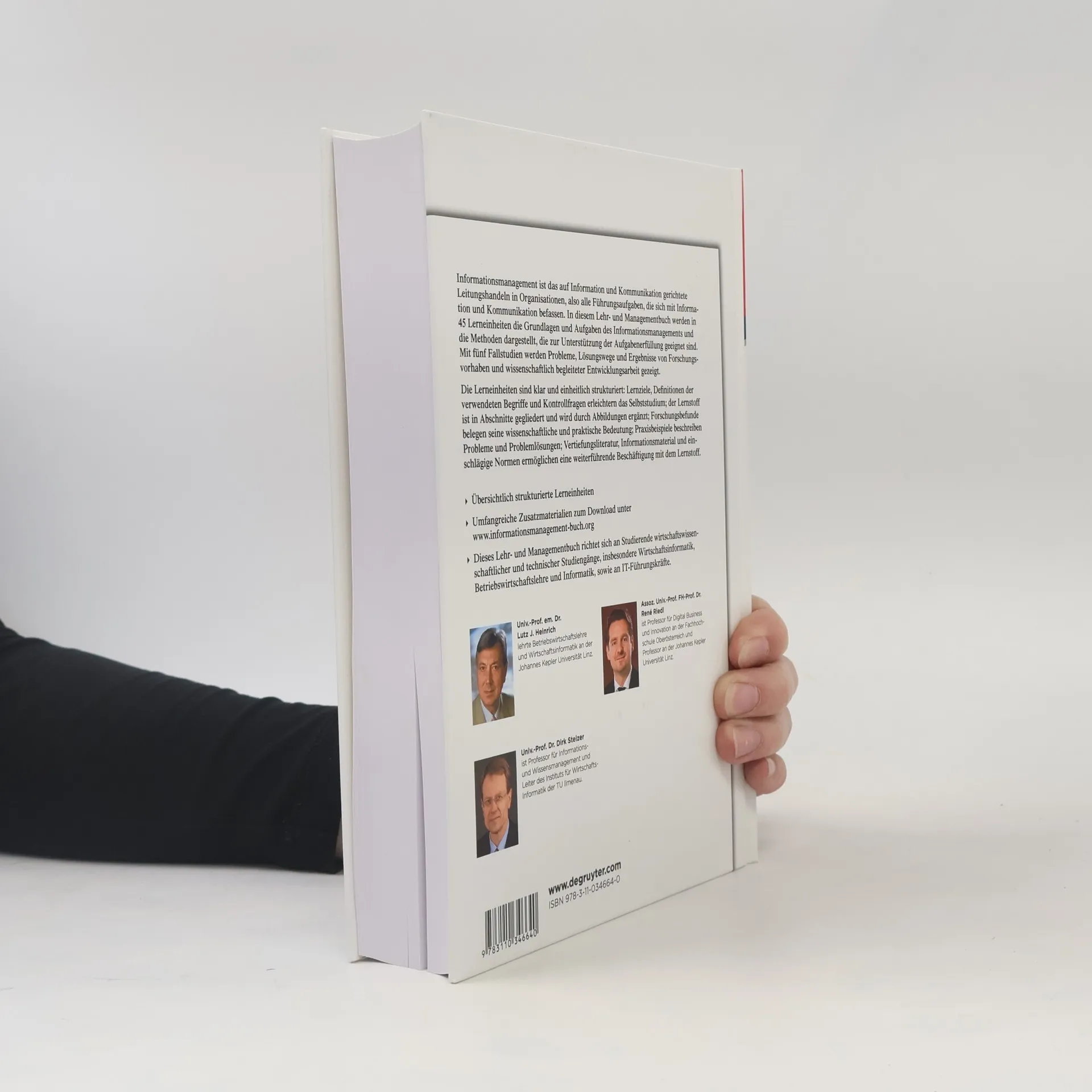 Informationsmanagement ist das auf Information und Kommunikation gerichtete Leitungshandeln in Organisationen, also alle Führungsaufgaben, die sich mit Information und Kommunikation befassen. In diesem Lehr- und Managementbuch werden in 45 Lerneinheiten die Grundlagen und Aufgaben des Informationsmanagements und die Methoden dargestellt, die zur Unterstützung der Aufgabenerfüllung geeignet sind. Mit fünf Fallstudien werden Probleme, Lösungswege und Ergebnisse von Forschungsvorhaben und wissenschaftlich begleiteter Entwicklungsarbeit gezeigt. Die Lerneinheiten sind klar und einheitlich strukturiert: Lernziele, Definitionen der verwendeten Begriffe und Kontrollfragen erleichtern das Selbststudium; der Lernstoff ist in Abschnitte gegliedert und wird durch Abbildungen ergänzt; Forschungsbefunde belegen seine wissenschaftliche und praktische Bedeutung; Praxisbeispiele beschreiben Probleme und Problemlösungen; Vertiefungsliteratur, Informationsmaterial und einschlägige Normen ermöglichen eine weiterführende Beschäftigung mit dem Lernstoff.
