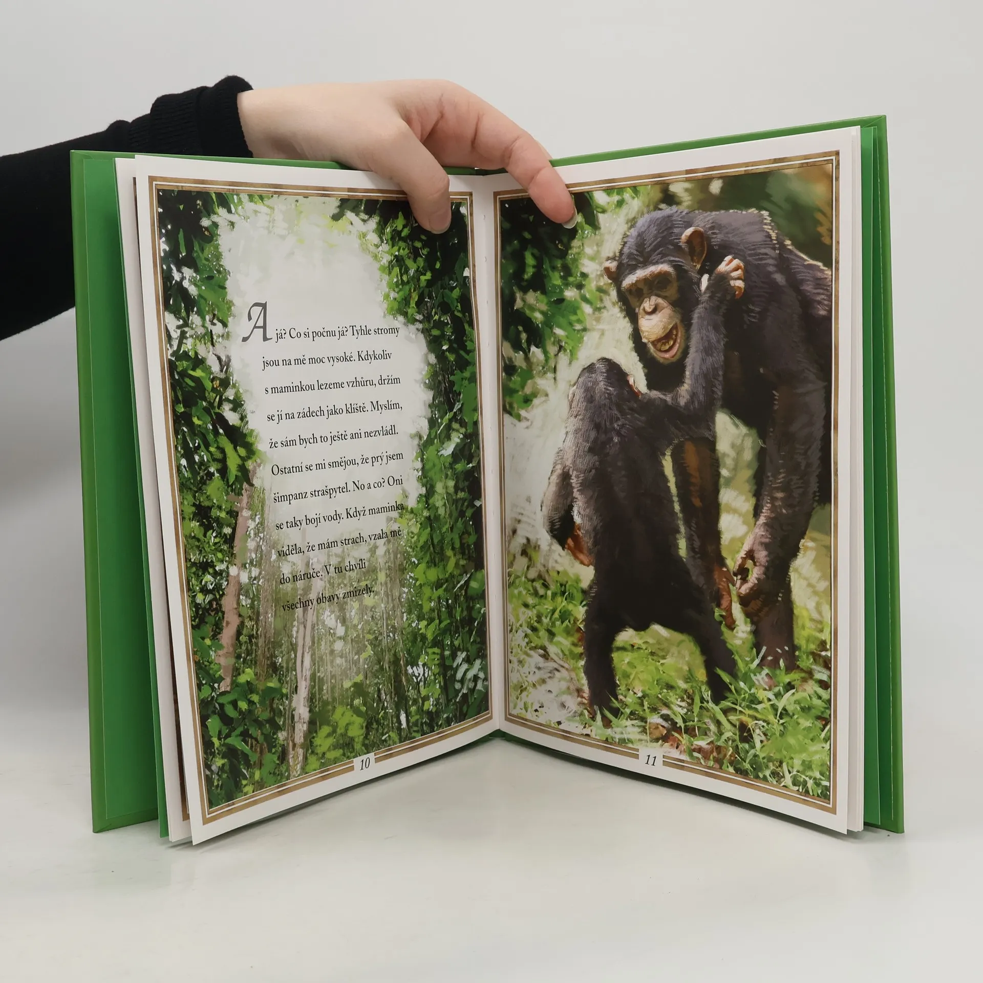 Malý šimpanz se toho musí hodně učit, aby dokázal žít s tlupou příbuzných v korunách stromů. Někdy je těžké odhodlat se ke šplhání na vysoký strom, kde rostou šťavnaté plody. Ale když to šimpanz dokáže, rázem mu stoupne sebevědomí...