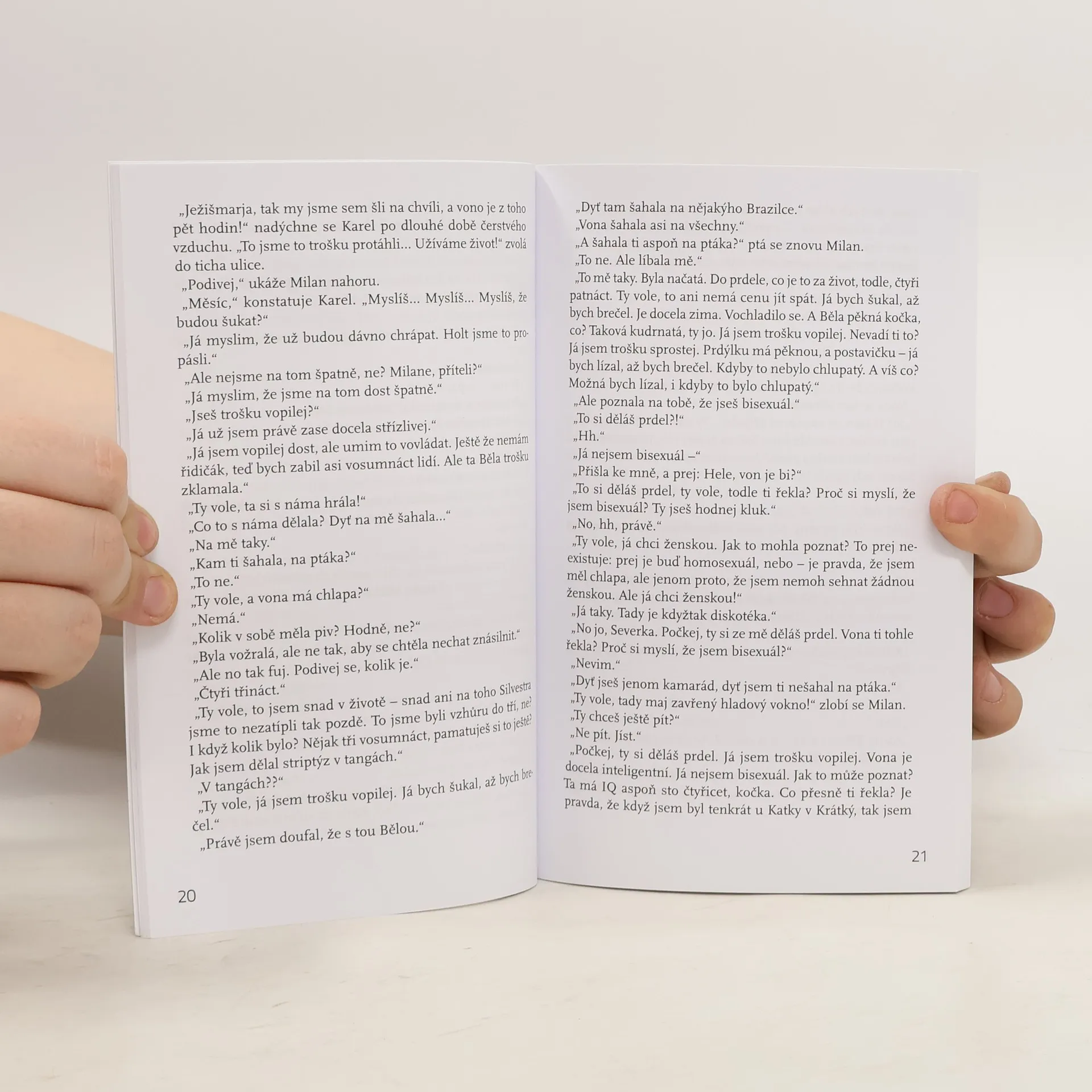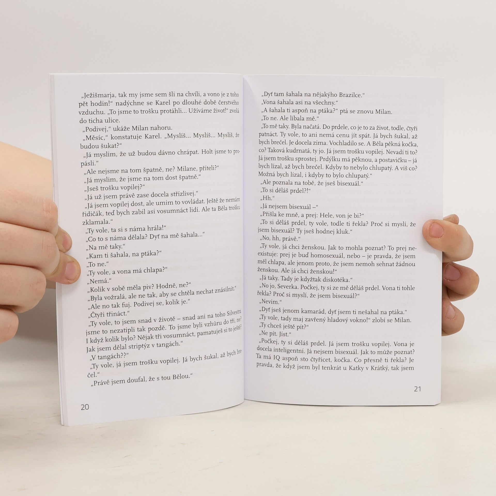 Karel je typický Pražák v Kristových letech: pravičák, single a pošuk. Ubíjející život prodavače si čas od času zpestří návštěvou třicetiletého šatnáře Milana v severočeském maloměstě. Dva kamarádi dlouze diskutují o životě, politice, jejich hlavním tématem je ale něžné pohlaví, které dobývají v reálném i virtuálním světě. Třetí próza autora, který se hlásí k severočeské škole a především k Vladimíru Páralovi.