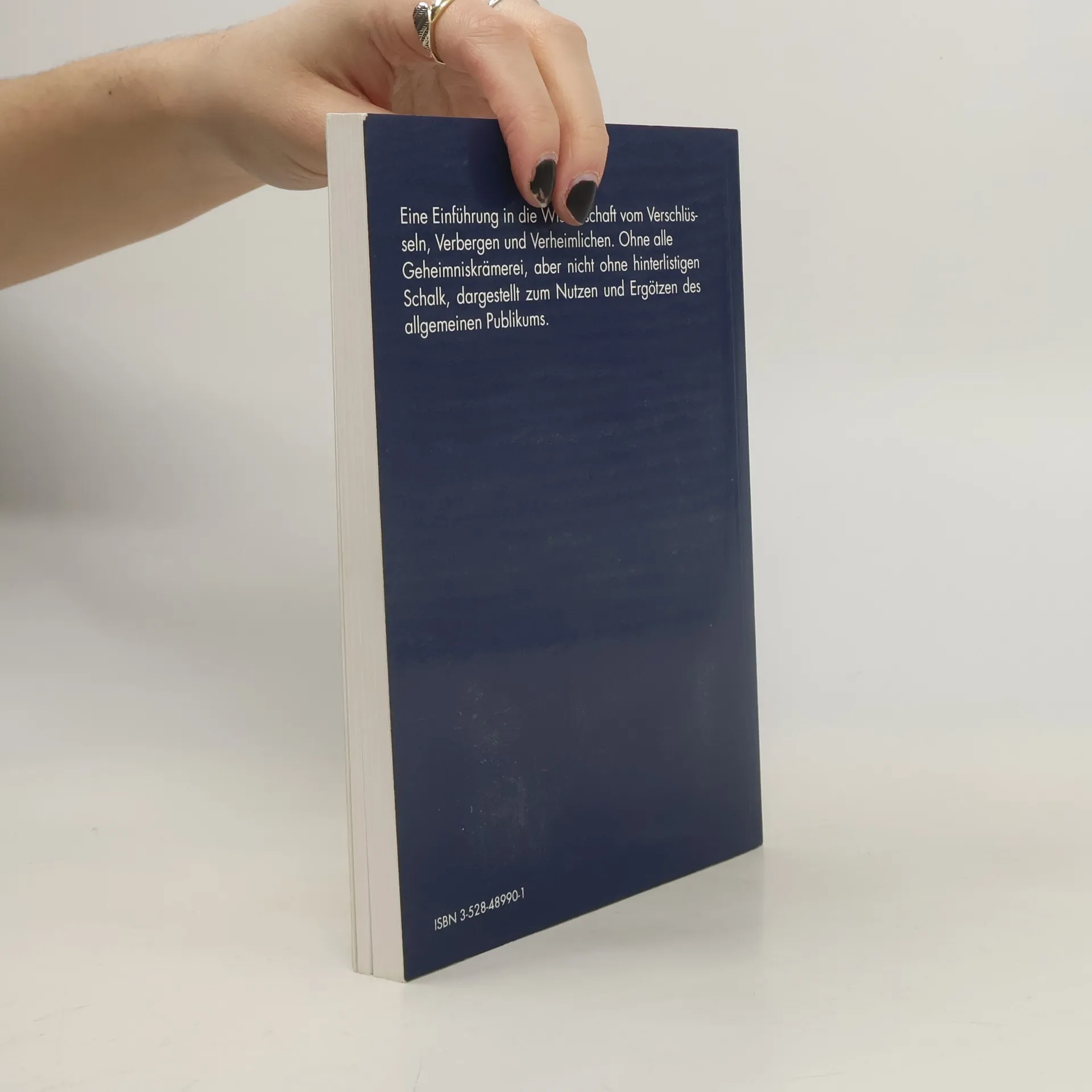 YHUVWHKHQ VLH GDV?- Wenn nicht, sollten Sie dieses Buch lesen. Es bietet eine reich illustrierte, leichtverdauliche und amüsante Einführung in die Kryptologie. Diese Wissenschaft beschäftigt sich damit, Nachrichten vor unbefugtem Lesen und unberechtigter Änderung zu schützen. Ein besonderer Akzent liegt auf der Behandlung moderner Entwicklungen. Dazu gehören insbesondere Zugangskontrolle zu Rechnern, elektronische Unterschrift und Bezahlen mit Chipkarte. „Selbst ein Hinweis auf den idealen Ort für die Lektüre fehlt nicht: In der Badewanne soll sie besonders geeignet sein.“ Frank Braatz in à la card aktuell, März 1993. Für die 5. Auflage wurde der Text abermals verbessert.