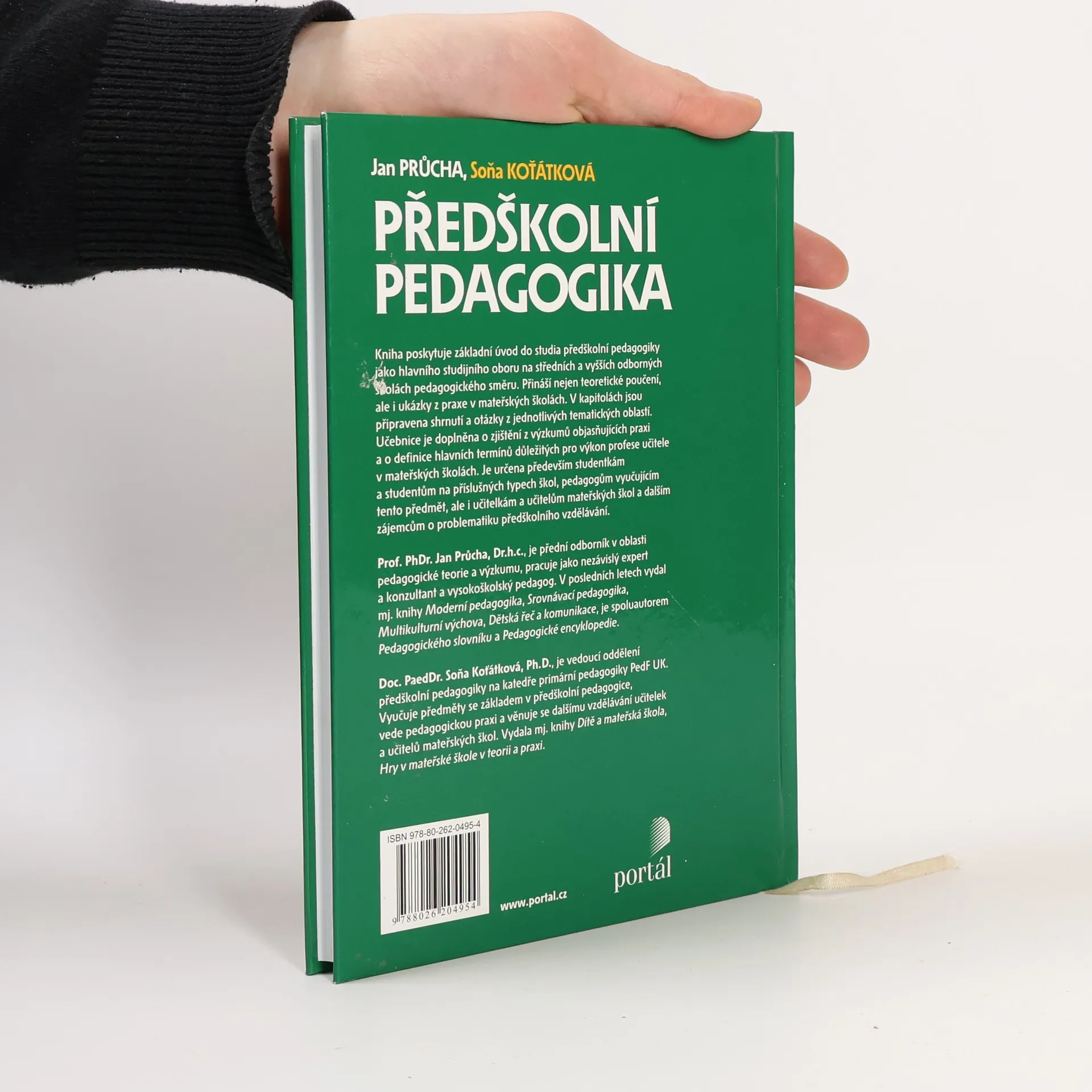 Učebnice pro střední a vyšší odborné školy / Kniha poskytuje základní úvod do studia předškolní pedagogiky jako hlavního studijního oboru na středních a vyšších odborných školách pedagogického směru. Přináší nejen teoretické poučení, ale i ukázky z praxe v mateřských školách. V kapitolách jsou připravena shrnutí a otázky z jednotlivých tematických oblastí. Učebnice je doplněna o zjištění z výzkumů objasňujících praxi a o definice hlavních termínů důležitých pro výkon profese učitele v mateřských školách. Je určena především studentkám a studentům na příslušných typech škol, pedagogům vyučujícím tento předmět, ale i učitelkám mateřských škol a dalším zájemcům o problematiku předškolního vzdělávání. Prof. PhDr. Jan Průcha, DrSc., Dr.h.c. je přední odborník v oblasti pedagogické teorie a výzkumu, pracuje jako nezávislý expert a konzultant a vysokoškolský pedagog. V posledních letech vydal mj. knihy Moderní pedagogika, Srovnávací pedagogika, Multikulturní výchova, Dětská řeč a komunikace, je spoluautorem Pedagogického slovníku a Pedagogické encyklopedie. PaedDr. Soňa Koťátková, Ph. D. je vedoucí oddělení předškolní pedagogiky na katedře primární pedagogiky PedF UK. Vyučuje předměty se základem v předškolní pedagogice, vede pedagogickou praxi a věnuje se dalšímu vzdělávání učitelek mateřských škol. Vydala mj. knihy Dítě a mateřská škola, Hry v mateřské škole v teorii a praxi.