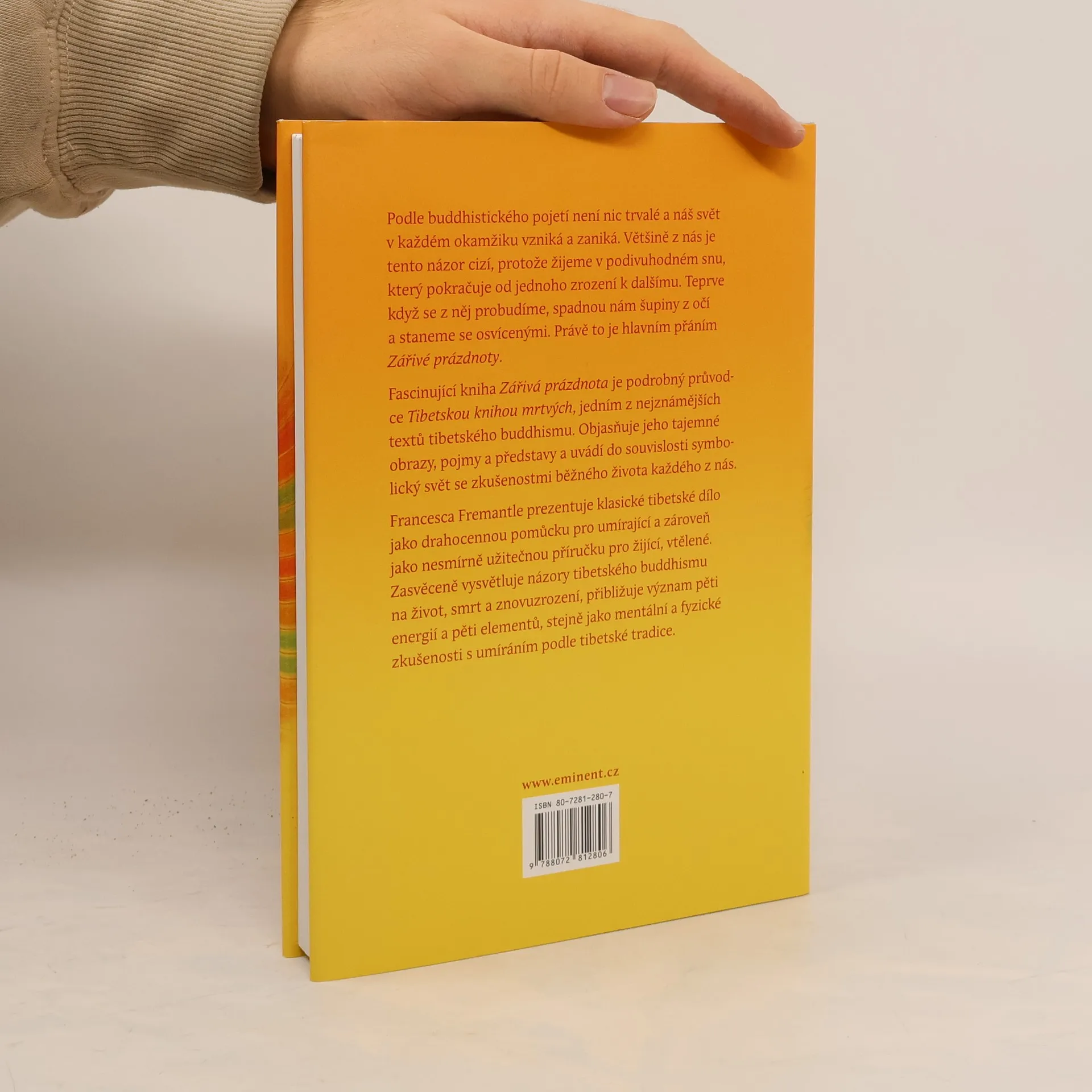 Fascinující kniha Zářivá prázdnota je podrobný průvodce k Tibetské knize mrtvých, jednomu z nejznámějších textů tibetského buddhismu. Objasňuje jeho tajemné obrazy, pojmy a představy a uvádí do souvislosti symbolický svět se zkušenostmi běžného života každého z nás.Francesca Fremantle prezentuje klasické tibetské dílo jako drahocennou pomůcku pro umírající a zároveň jako nesmírně užitečnou příručku pro žijící, vtělené. Zasvěceně vysvětluje názory tibetského buddhismu na život, smrt a znovuzrození, přibližuje význam pěti energií a pěti elementů, stejně jako i mentální a fyzické zkušenosti s umíráním podle tibetské tradice