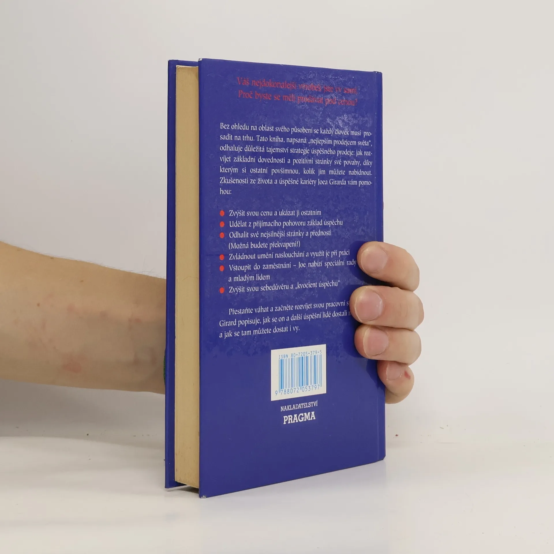 Bez ohledu na oblast svého působení se každý člověk musí prosadit na trhu. Tato kniha napsaná "nejlepším prodejcem světa" odhaluje důležitá tajemství strategie úspěšného prodeje: jak rozvíjet základní dovednosti a pozitivní stránky své povahy, díky kterým si ostatní povšimnou , kolik jim můžete nabídnout.Zkušenosti ze života a úspěšné kariéry autora vám pomohou: Zvýšit svou cenu a ukázat ji ostatním Udělat z přijímacího pohovoru základ úspěchu Odhalit své nejsilnější stránky Zvýšit svou sebedůvěru a " kvocient úspěchu"