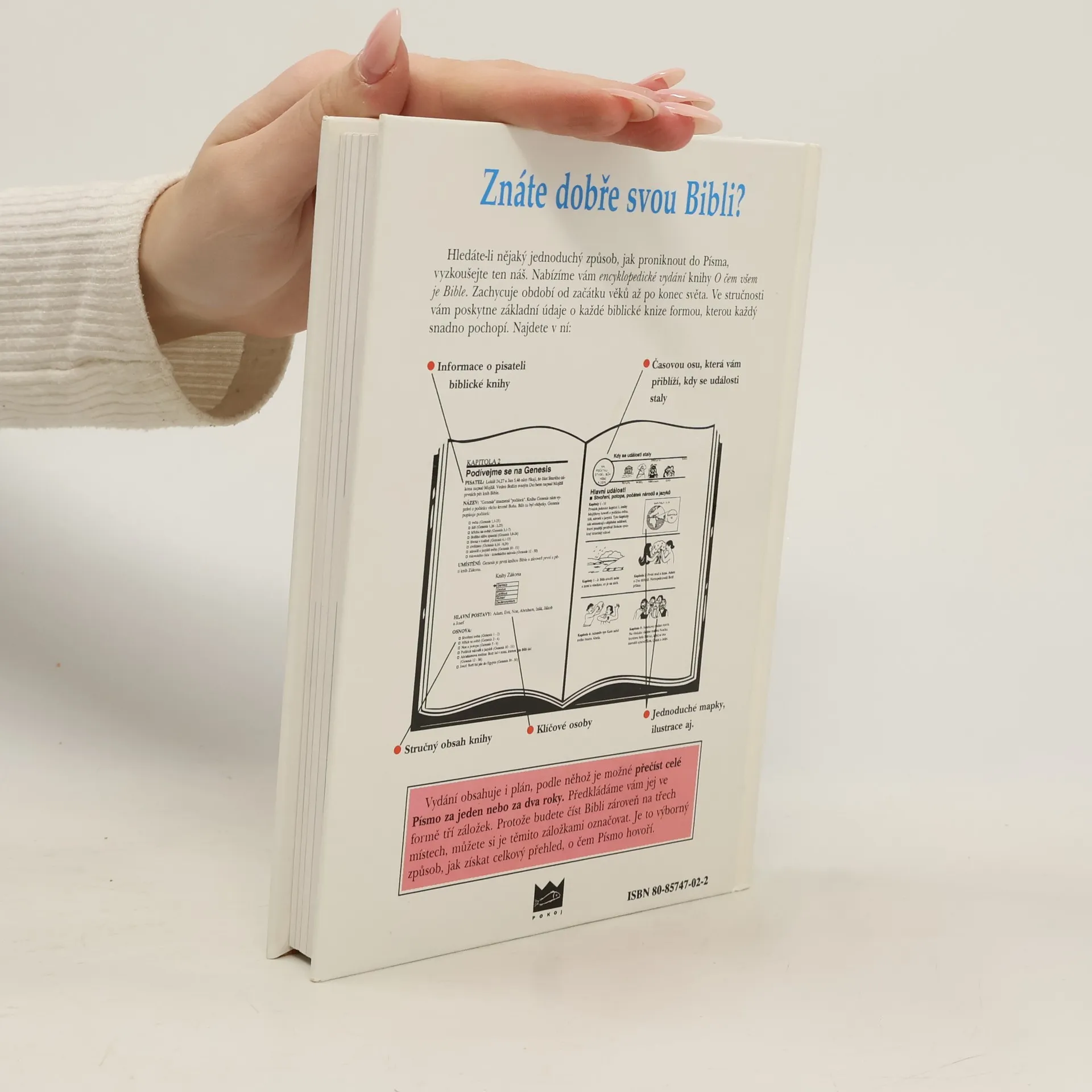 Encyklopedická publikace obsahující větší počet mapek, tabulek, grafů a vyobrazení (informace o pisateli bibl.knihy, časová osa, stručný obsah knihy, klíčové osoby, mapky a ilustrace) od počátku věků až po konec světa. To vše může čtenářům usnadnit seznámení s biblickou zvěstí a porozumět jejímu poselství.Toto encyklopedické vydání vychází z klasického díla H.Maersové.Úvod ke knize napsali Billy a Ruth Grahamovi.