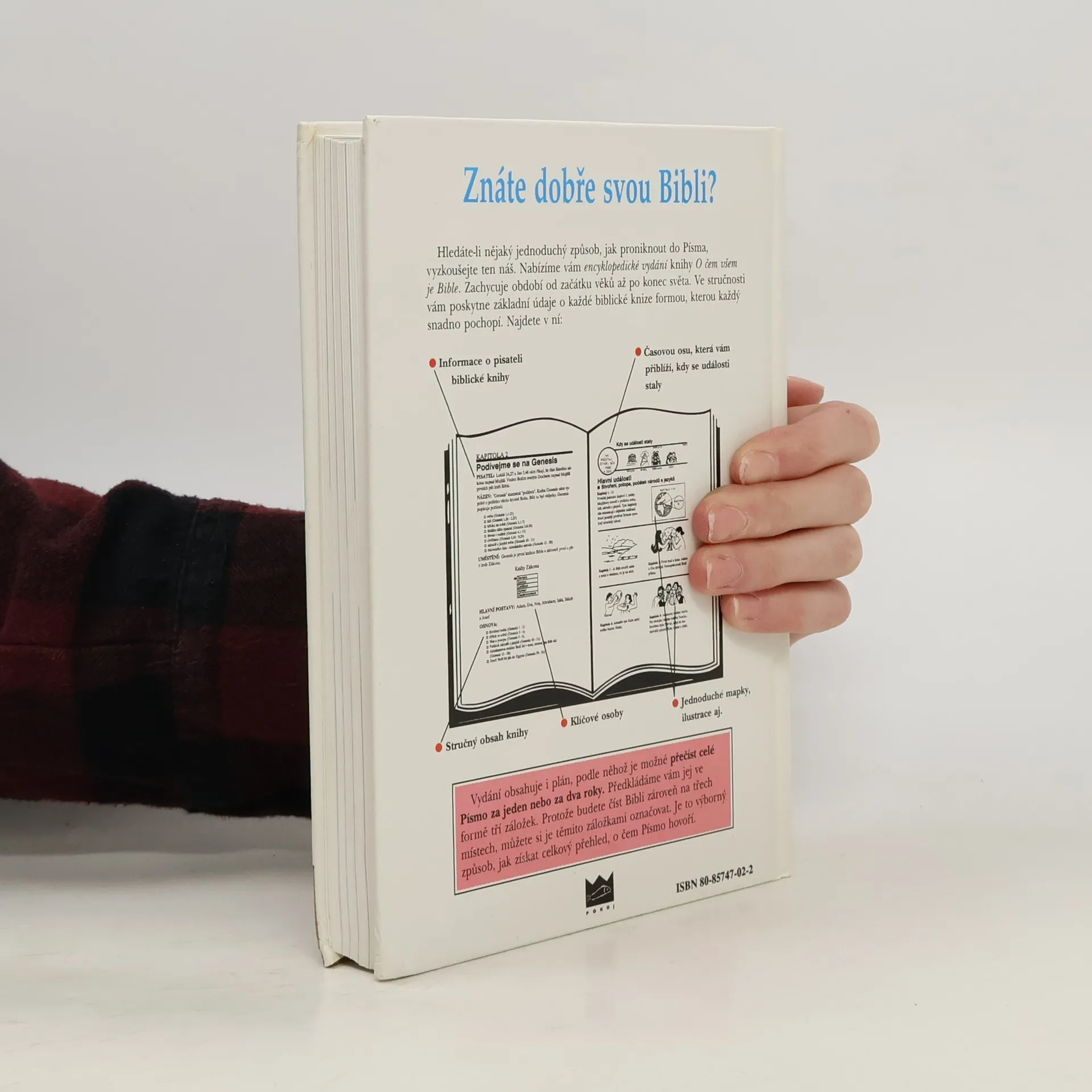 Encyklopedická publikace obsahující větší počet mapek, tabulek, grafů a vyobrazení (informace o pisateli bibl.knihy, časová osa, stručný obsah knihy, klíčové osoby, mapky a ilustrace) od počátku věků až po konec světa. To vše může čtenářům usnadnit seznámení s biblickou zvěstí a porozumět jejímu poselství.Toto encyklopedické vydání vychází z klasického díla H.Maersové.Úvod ke knize napsali Billy a Ruth Grahamovi.