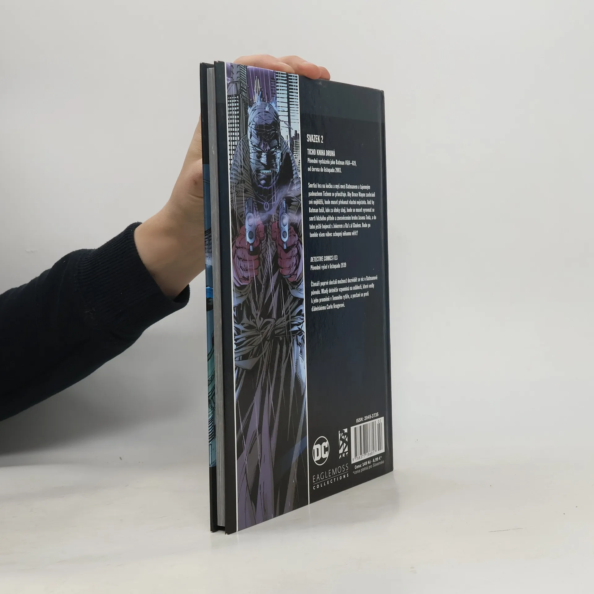 V druhém díle komiksu Batman: Ticho se Temný rytíř utkává se spoustou známých padouchů, včetně Scarecrowa, Ra's al Ghula, Two-Face, Riddlera... a dokonce i samotného Jokera. A postupně se Batman dostává blíž a blíž k tajemnému muži v obvazech, který se všemi manipuluje. Jenže dostat se k němu blízko a porazit ho, to jsou dvě zcela odlišné věci.