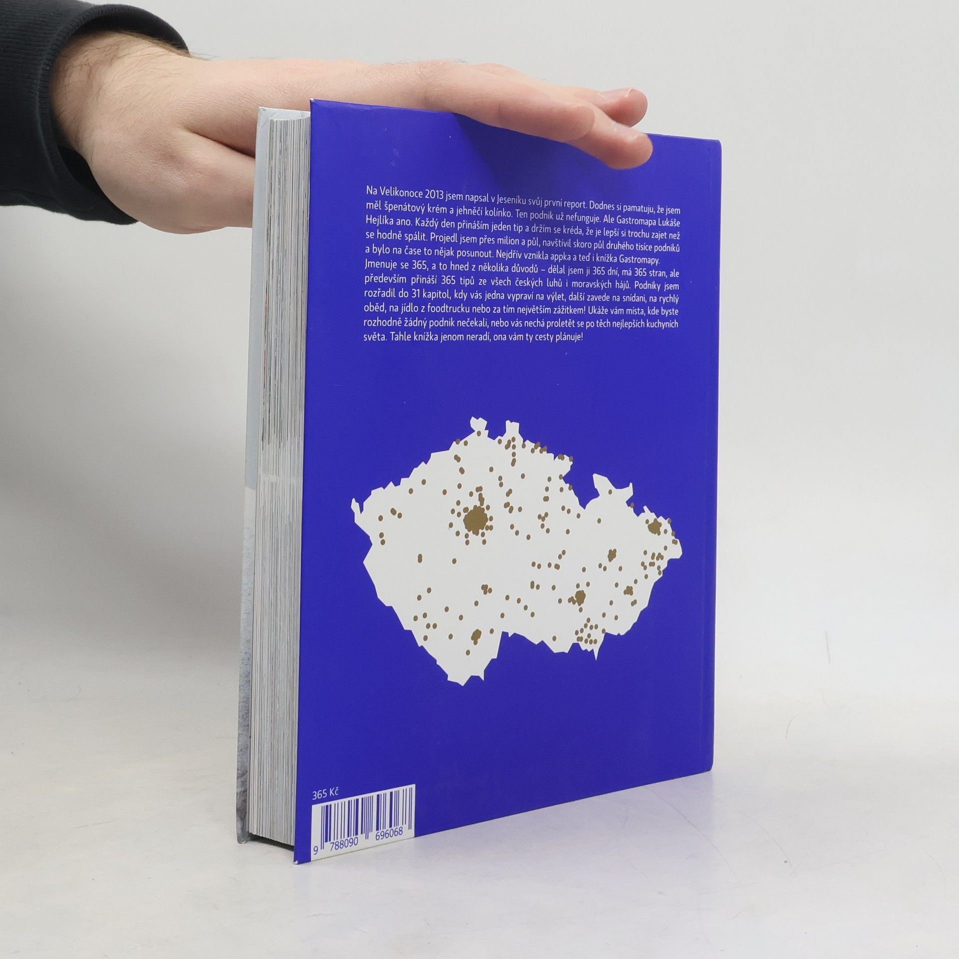 Jmenuje se 365, a to hned z několika důvodů – dělal jsem ji 365 dní, má 365 stran, ale především přináší 365 tipů ze všech českých luhů i moravských hájů. Podniky jsem rozřadil do 31 kapitol, kdy vás jedna vypraví na výlet, další zavede na snídani, na rychlý oběd, na jídlo z foodtrucku nebo za tím největším zážitkem! Ukáže vám místa, kde byste rozhodně žádný podnik nečekali, nebo vás nechá proletět se po těch nejlepších kuchyních světa. Tahle knížka jenom neradí, ona vám ty cesty plánuje!