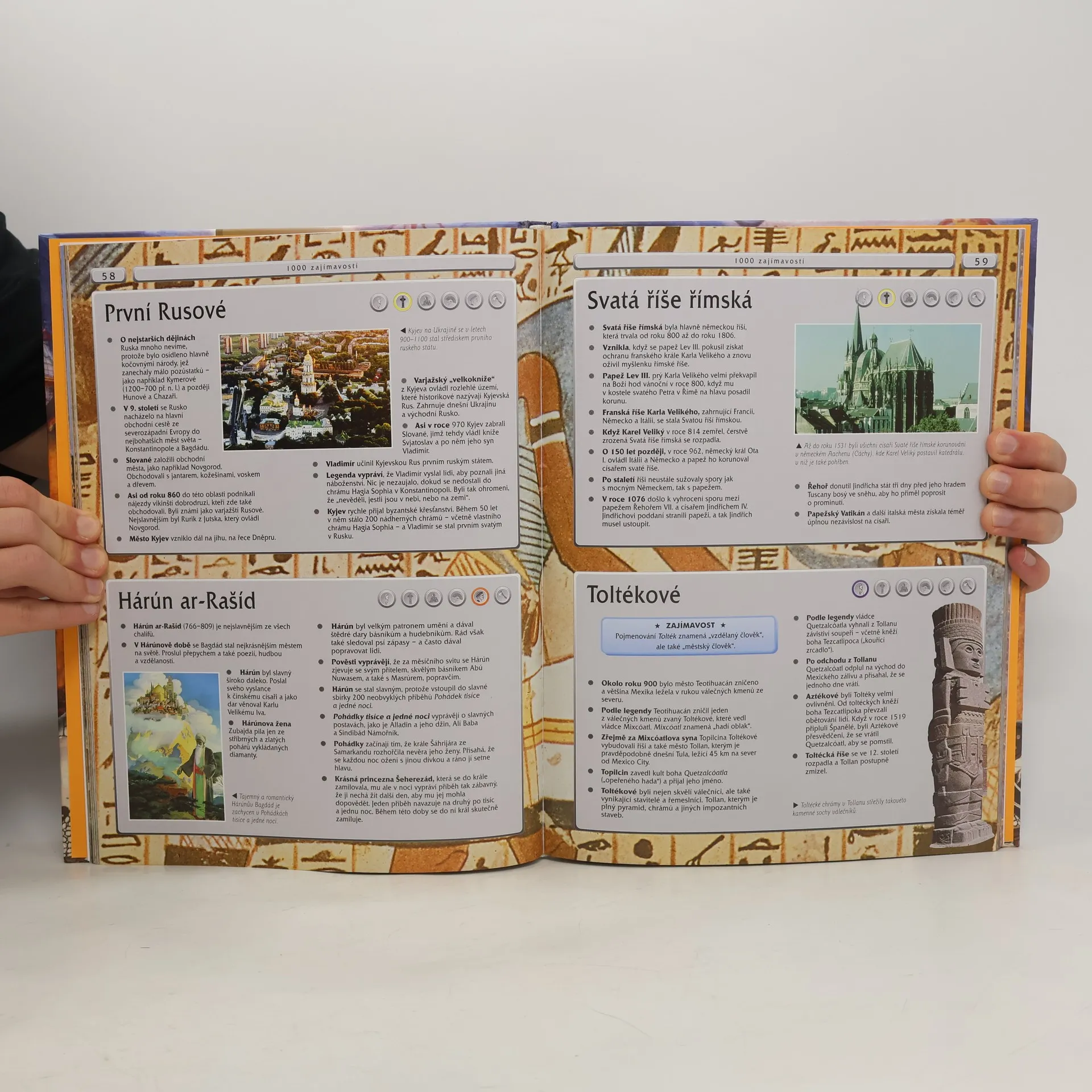 Pokud dychtíte po faktech, držíte v rukou ideální knihu. Představuje nejen bohatý zdroj informací, ale skoro na každé stránce najdete i spoustu inspirace a překvapení. Máte-li rádi informace přehledně seřazené do jednotlivých bodů, pak si přijdete na své. Kniha obsahuje 200 ilustrovaných tematických panelů od nejstarších dějin až po dějiny nové doby.