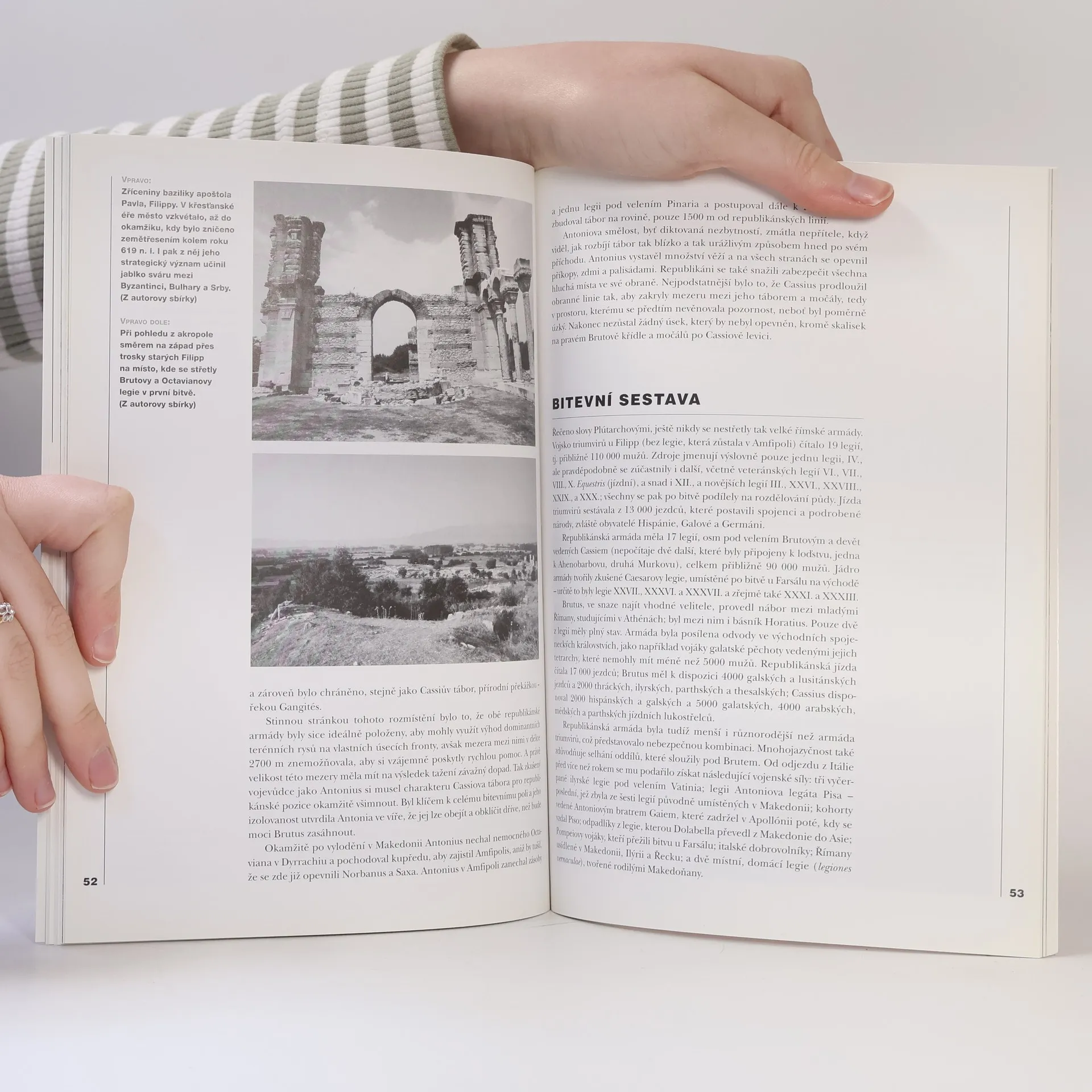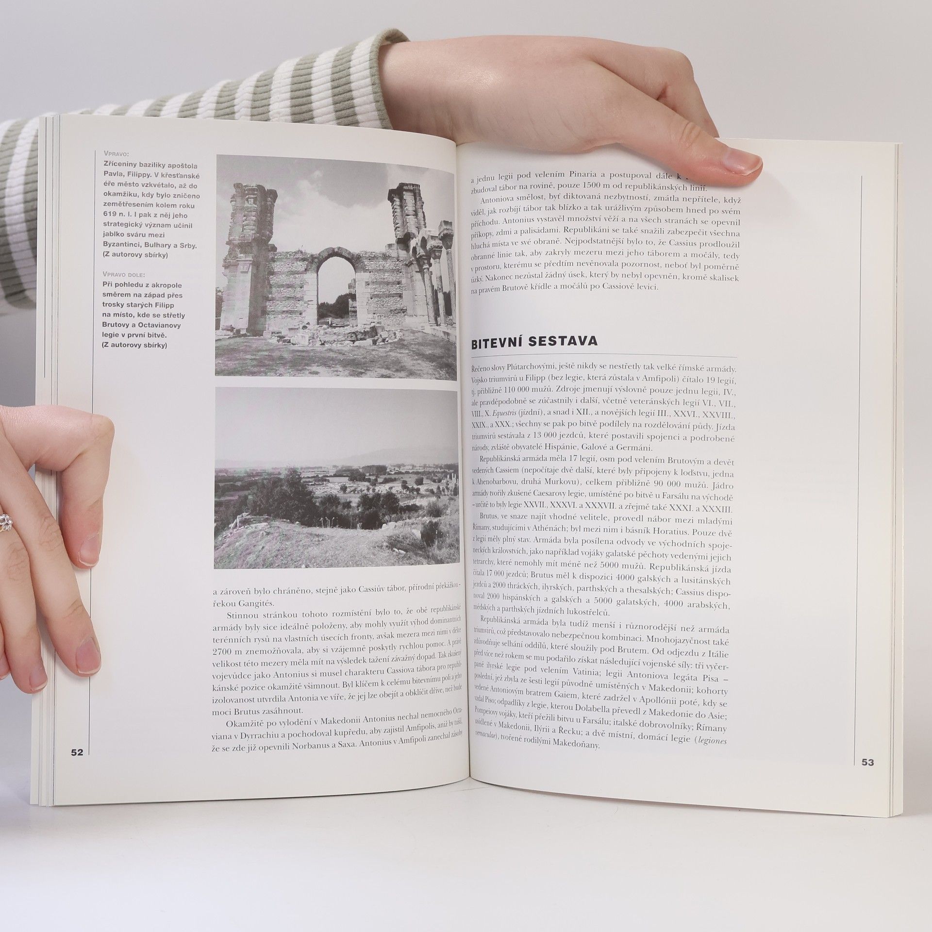Ústředním tématem této knížky je situace, která nastala po zavraždění Caesara, a dramatické události, které následovaly poté, co se vydali Antonius a Octavianus pronásledovat Caesarovy vrahy Bruta a Cassia. Autorovo nadání napínavě a zároveň s odbornou znalostí vylíčit motivy spiklenců, měnící se politické klima, průběh občanské války, zápletky vztahu dvou hlavních aktérů Antonia a Octaviana, strukturu římského vojska a konečné zúčtování s republikány, které osudově ovlivnilo další vývoj Říma, činí z této knížky skvělou četbu a příležitost důkladněji poznat významnou část římských dějin. Ani v tomto svazku Válečných tažení samozřejmě nechybějí mapy a množství barevných a černobílých ilustrací.