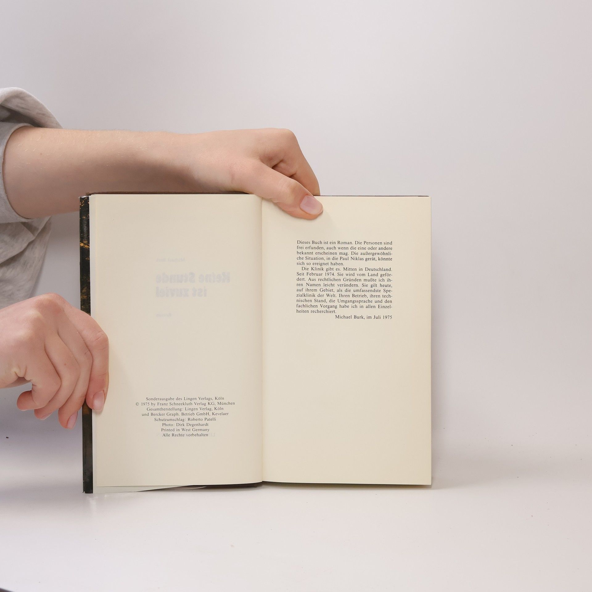 Keine Stunde ist zu viel »Der vollkommene Roman« schrieb DIE ZEIT zum Erscheinen. Paul Niklas, erfolgreicher Herzchirurg, erlebt bei einer spektakulären Operation einen Schwächeanfall – und zum zweiten Mal in seinem Leben fühlt er sich schuldig am Tod eines Menschen. Doch obwohl niemand vom ersten Fall weiß und auch keiner ihm jetzt eine Schuld gibt, beschließt er, seine Arztkarriere an den Nagel zu hängen. Plötzlich findet er sich jedoch als entscheidende Figur im Entführungsfall des PAN AM Jumbo-Jets in Damaskus wieder – hin- und hergerissen zwischen Regierung, CIA, der palästinensischen Befreiungsgruppe AWT und seinen eigenen Grundsätzen. Schließlich geht es um das Leben des AWT Führers Abu Dschafar – und davon hängt nicht nur das Leben der 184 Geiseln ab, sondern auch das von Paul Niklas – und seiner Tochter. Deutschland und die Vereinigten Staaten, Karachi und Paris – das sind die Tatorte der aufsehenerregenden Geschichte. Die Presse über Michael Burks Romane »Burk kennt sich in den Grundregeln der Spannungstechnik aus.« Der Spiegel »Ein Produkt, das der vollkommene Roman genannt werden darf.« Die Zeit »Wer packende Unterhaltung schätzt, wird sicher nicht enttäuscht.« Nürnberger Nachrichten »Mitreißend und packend von der ersten bis zur letzten Seite.« Bücherschau Wien »Burk hat bei Fachleuten recherchiert« Weltwoche, Zürich »Geschickt, glänzend, spannend und abgewogen.« Aufbau, New York