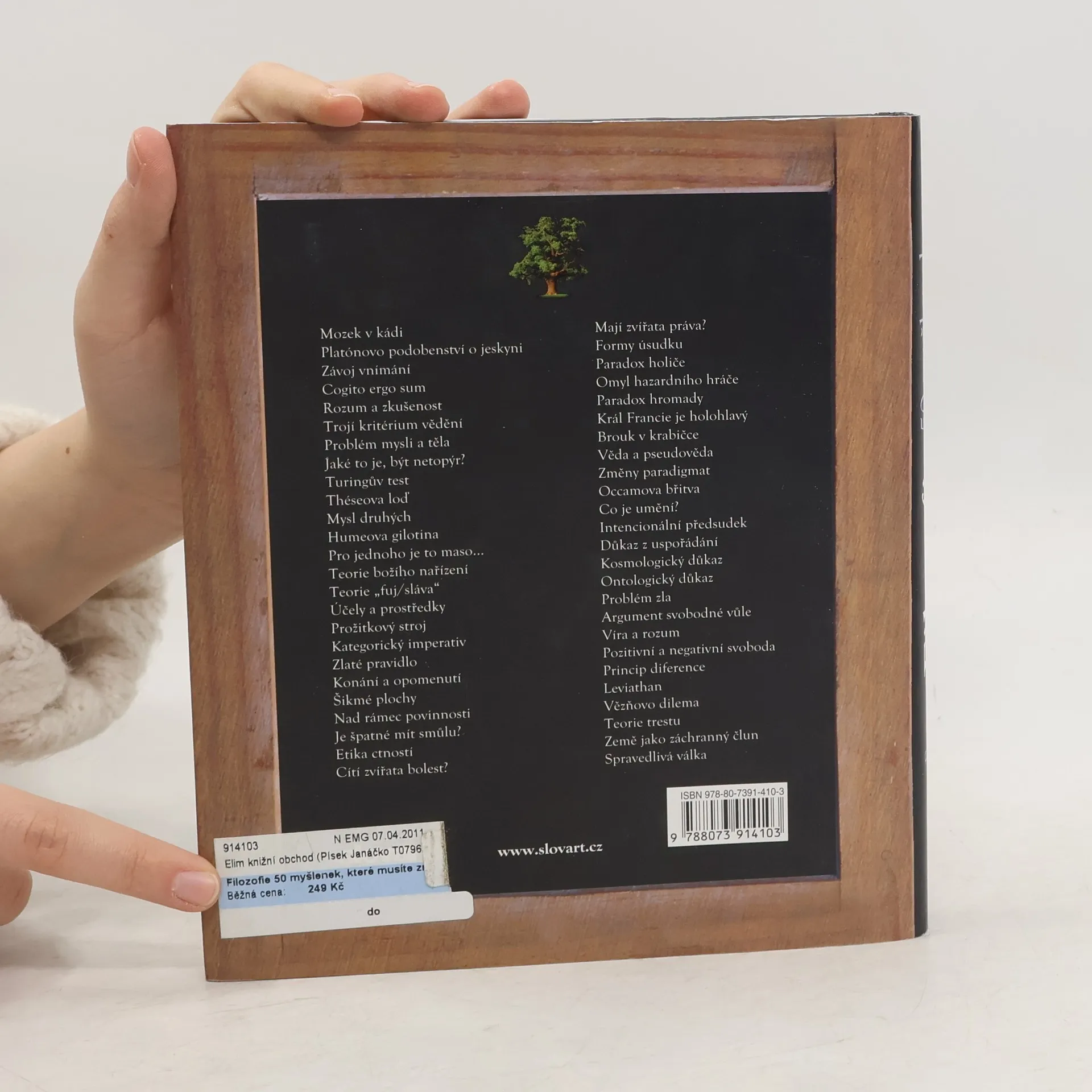 Soubor padesáti čtivých a srozumitelně napsaných esejů představuje a vysvětluje problémy poznání, vědomí, identity, etiky, víry, spravedlnosti, jazyka, významu a estetiky, které zaměstnávají myslitele od dob starověkého Řecka až po současnost. Zabývá se otázkou, co je umění, co se skrývá za větou Cogito ergo sum, zabývá se problémy zla a mysli druhých, Platónovým podobenstvím o jeskyni, paradoxem holiče, argumentem svobodné vůle, otázkami Théseovy lodi, Occamovy břitvy, teoriemi mozku v kádi a brouka v krabičce, pojmem spravedlivá válka, teorií božího nařízení a mnoha dalšími nadčasovými tématy. Demystifikující a zábavná kniha je pro laického čtenáře ideálním úvodem do západní filozofie. Autor má opravdové nadání pro populární výklad často obtížných a provokativních filozofických otázek.