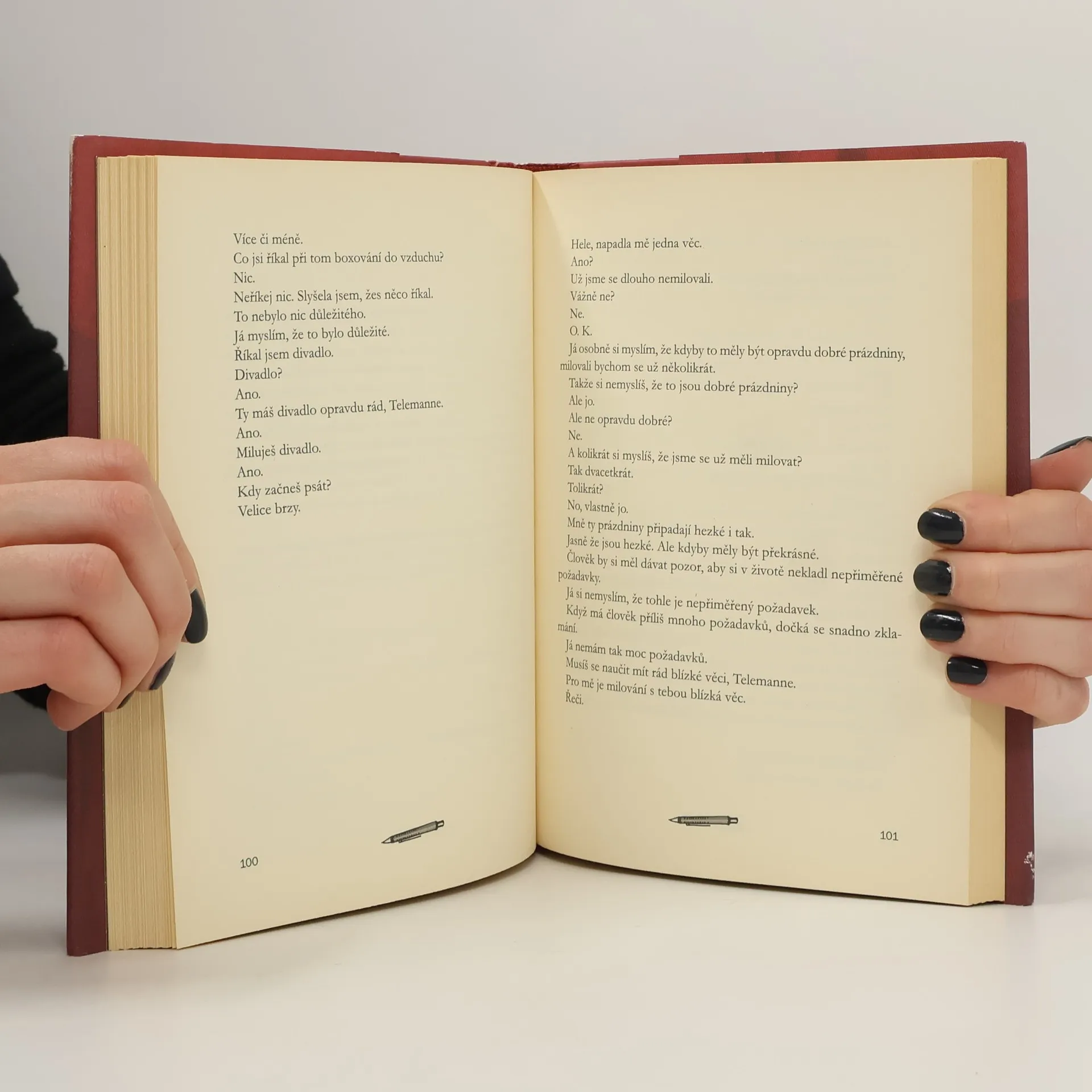 Postavy v Loeových románech stárnou spolu se svým autorem, a tak není divu, že v roce, kdy Loe oslavil čtyřicetiny, přivádí na scénu čtyřicetiletého hlavního hrdinu. V úvodu jej lakonicky představuje takto: "Bror Telemann. 42 let. Dramaturg Národního divadla. Sní o tom, že jednou napíše sám nějaké divadlo. Sakra dobrý kus. Který tomu všemu dá smysl. Zrak výtečný. Problémy s alkoholem. Neee. Ani ne." K tomu je třeba ještě dodat, že tento hlavní hrdina má dvě zvláštní "záliby": miluje Nigellu Lawsonovou, britskou televizní kuchařskou hvězdu, a nenávidí vše německé. Obojí mu značně komplikuje život, neboť jeho manželka nemá samozřejmě ani pro jedno z toho pochopení. Tím se dostáváme k tomu, že Bror Telemann není tentokrát na scéně sám, jak jsme byli doposud u Loea zvyklí - sekunduje mu jeho třiačtyřicetiletá manželka Nina, učitelka norštiny na střední škole, která se k Nigelle Lawsonové staví nanejvýš podezřívavě a na rozdíl od Brora Německo, Němce i němčinu bezmezně miluje. Stafáž tvoří tři Telemannovic děti a manželé Baderovi, Němci jako poleno, kteří neumí ani slovo anglicky. Zřejmě proto je vůbec nezarazí, když v rezervaci na ubytování, kterou posílají Nině Telemannové, přeloží automatický překladač název jejich města Garmisch-Partenkirchen jako Mixing Part Churches.