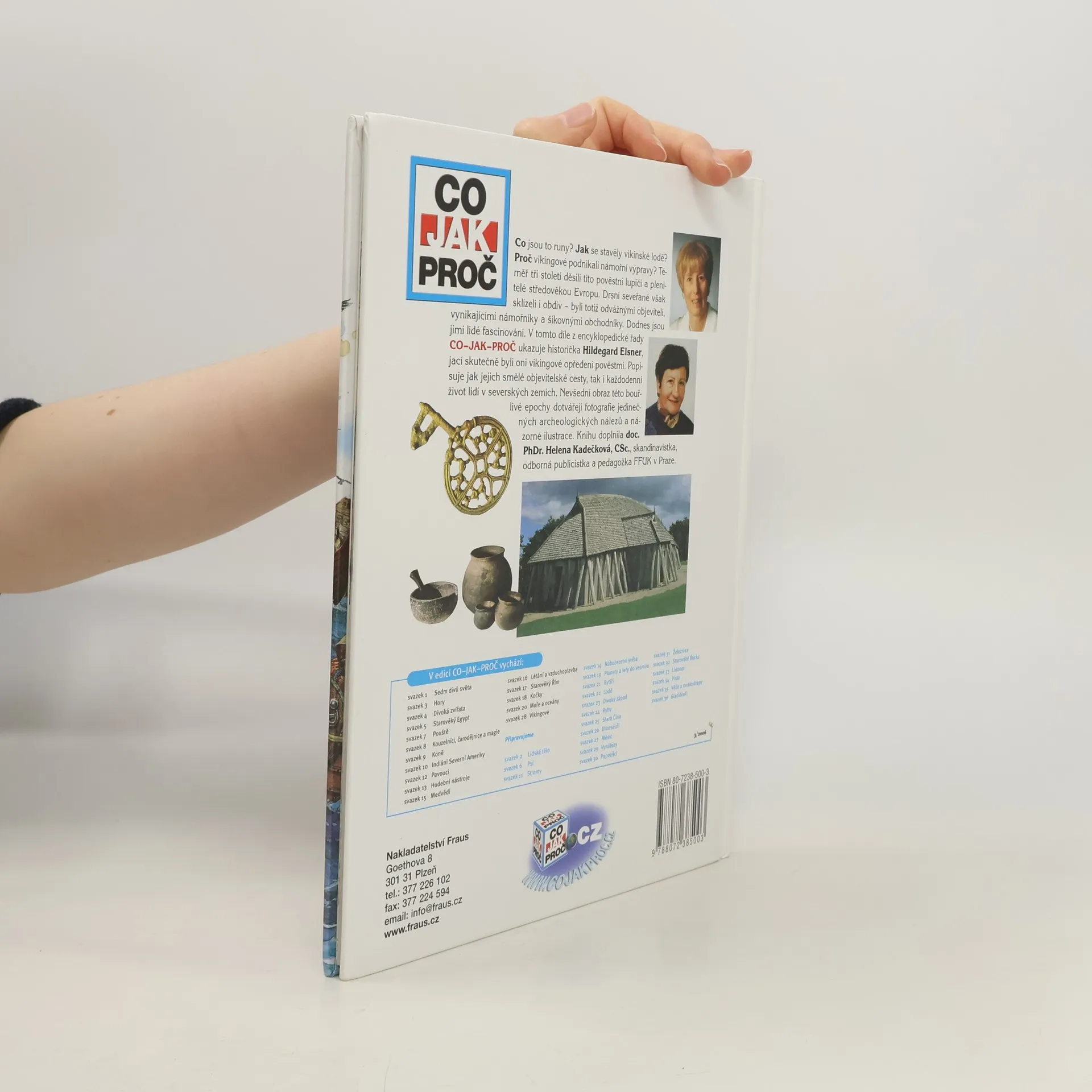 Co jsou to runy? Jak se stavěly vikinské lodě? Proč vikingové podnikali námořní výpravy? Téměř tři století děsili tito pověstní lupiči a plenitelé středověkou Evropu. Drsní seveřané však sklízeli i obdiv – byli totiž odvážnými objeviteli, vynikajícími námořníky a šikovnými obchodníky. Dodnes jsou jimi lidé fascinováni. Historička Hildegard Elsner ukazuje v tomto díle z encyklopedické řady CO–JAK–PROČ, jací skutečně byli oni vikingové opředení pověstmi. Popisuje jak jejich smělé objevitelské cesty, tak i každodenní život lidí v severských zemích. Nevšední obraz této bouřlivé epochy dotvářejí fotografie jedinečných archeologických nálezů a názorné ilustrace. Knihu doplnila doc. PhDr. Helena Kadečková, skandinavistka, odborná publicistka a pedagožka FFUK.
