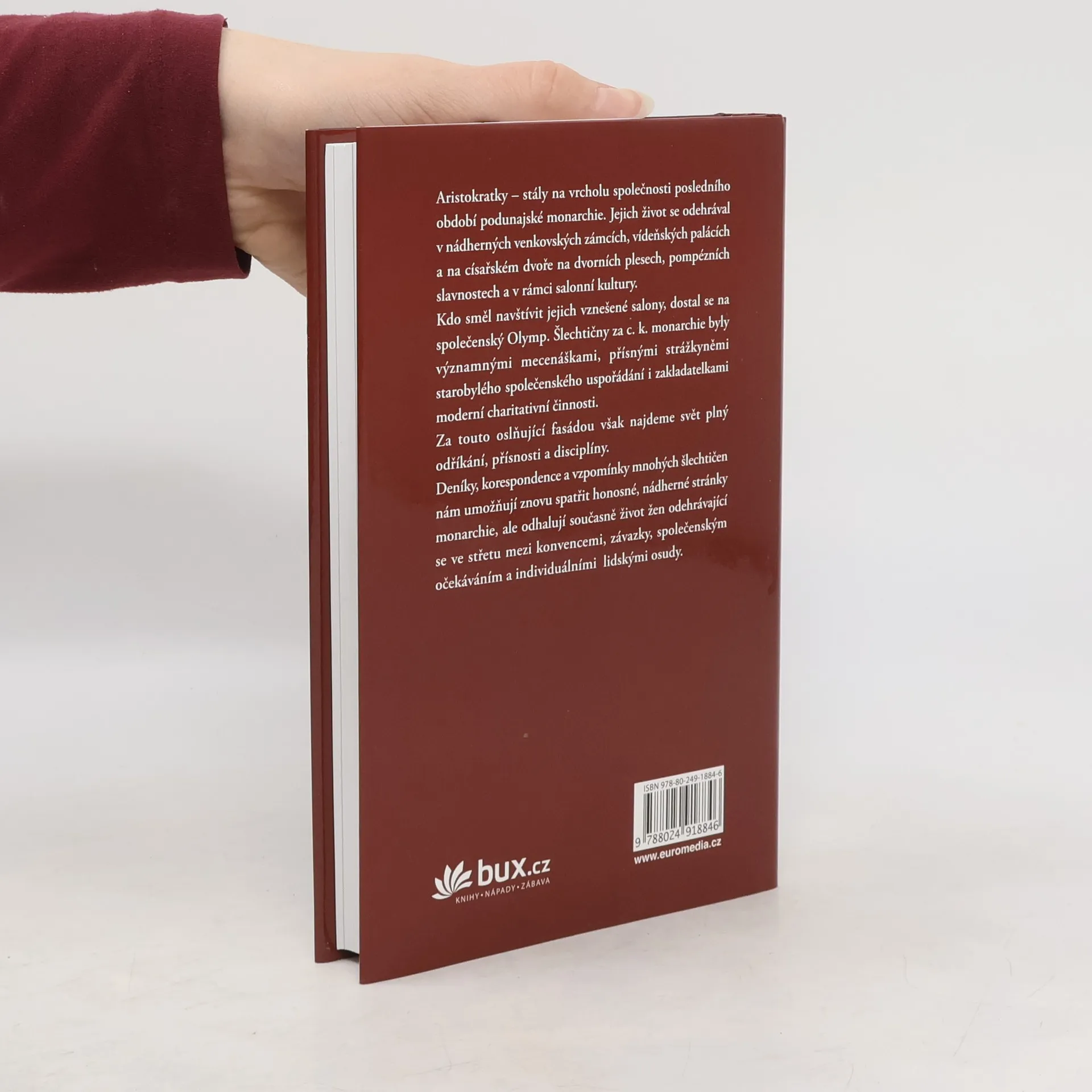 Aristokratky – stály na vrcholu společnosti posledního období podunajské monarchie. Jejich život se odehrával v nádherných venkovských zámcích, vídeňských palácích a na císařském dvoře na dvorních plesech, pompézních slavnostech a v rámci salonní kultury. Kdo směl navštívit jejich vznešené salony, dostal se na společenský Olymp. Šlechtičny za c. k. monarchie byly významnými mecenáškami, přísnými strážkyněmi starobylého společenského uspořádání i zakladatelkami moderní charitativní činnosti. Za touto oslňující fasádou však najdeme svět plný odříkání, přísnosti a disciplíny.