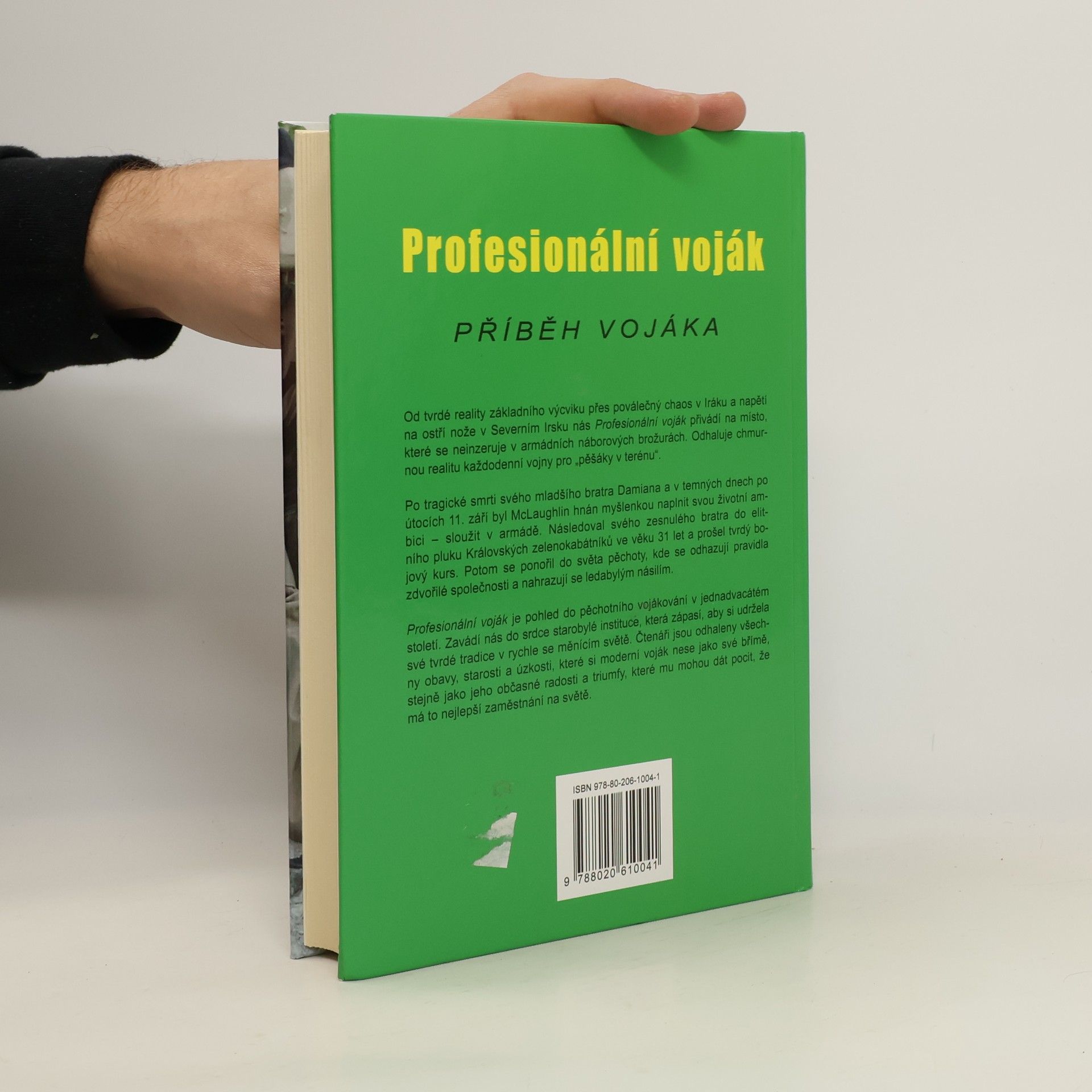Od tvrdé reality základního výcviku přes poválečný chaos v Iráku a napětí na ostří nože v Severním Irsku nás Profesionální voják přivádí na místo, které se neinzeruje v armádních náborových brožurách. Odhaluje chmurnou realitu každodenní vojny pro "pěšáky v terénu". Po tragické smrti svého mladšího bratra Damiana a v temných dnech po útocích 11. září se cítí McLaughlin hnán myšlenkou naplnit svou životní ambici, aby sloužil v armádě. Následoval svého zesnulého bratra do elitního pluku Královských zelenokabátníků ve věku 31 let a prošel tvrdý bojový kurs. Potom se ponořil do světa pěchoty, kde se odhazují pravidla zdvořilé společnosti a nahrazují se ledabylým násilím. Profesionální voják je pohled do pěchotního vojákování v jednadvacátém století. Zavádí nás do srdce starobylé instituce, která zápasí, aby si udržela své tvrdé tradice v rychle se měnícím světě. Čtenáři jsou odhaleny všechny obavy, starosti a úzkosti, které si moderní voják nese jako své břímě, stejně jako jeho občasné rad