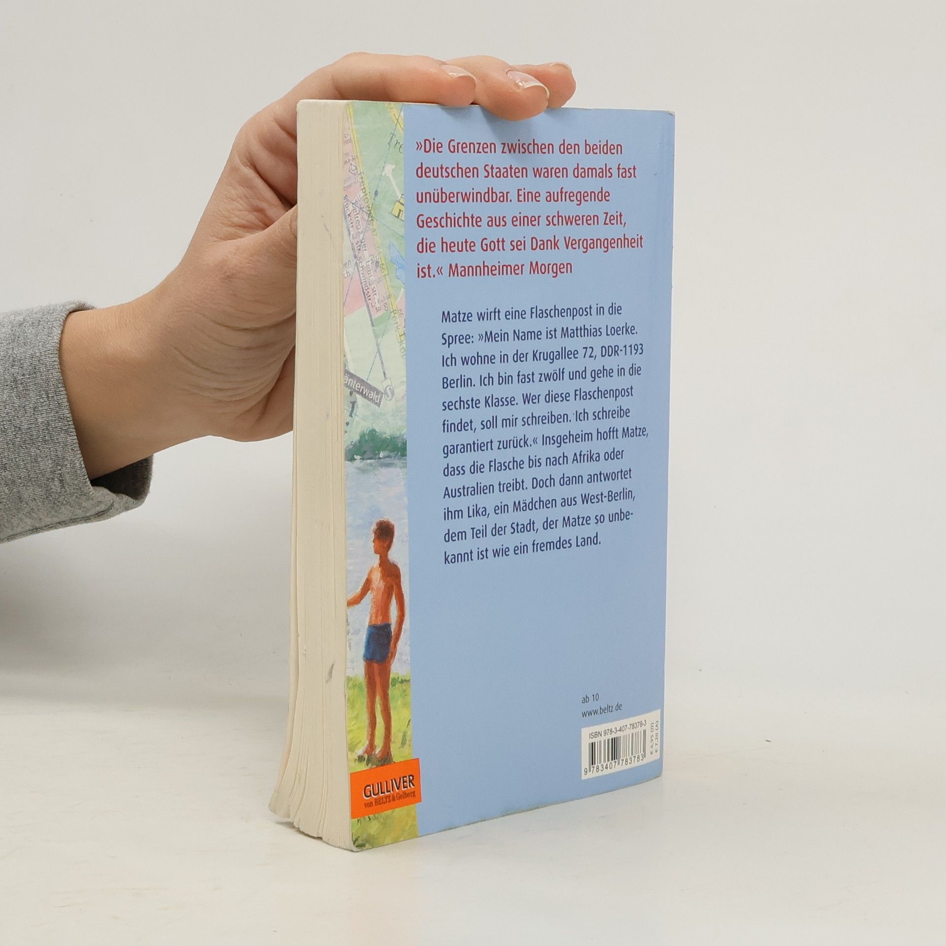 Matze hofft insgeheim, dass seine Flaschenpost von der Spree bis nach Afrika oder Australien treibt. Doch dann antwortet ihm Lika aus Westberlin. Dem Teil der Stadt, der Matze so unbekannt ist wie ein fremdes Land. "Mein Name ist Matthias Loerke", hatte Matze geschrieben. "Ich wohne in der Neuen Krugallee 72, DDR-1193 Berlin. Ich bin fast zwölf Jahre alt und gehe in die sechste Klasse. Wer diese Flaschenpost findet, soll mir schreiben. Ich schreibe garantiert zurück." Als Lika aus Westberlin antwortet, ist Matze trotzdem nicht enttäuscht. Der westliche Teil der Stadt ist ihm nämlich so unbekannt wie ein fremdes Land. Nur seine Eltern sind von der Brieffreundschaft nicht begeistert; Ostberlinern kann der Kontakt zu Menschen im Westen schaden. Und auch die Westler haben so ihre Bedenken. Doch Matze und Lika haben ihren eigenen Kopf - und sie schaffen es sogar, sich zu treffen.