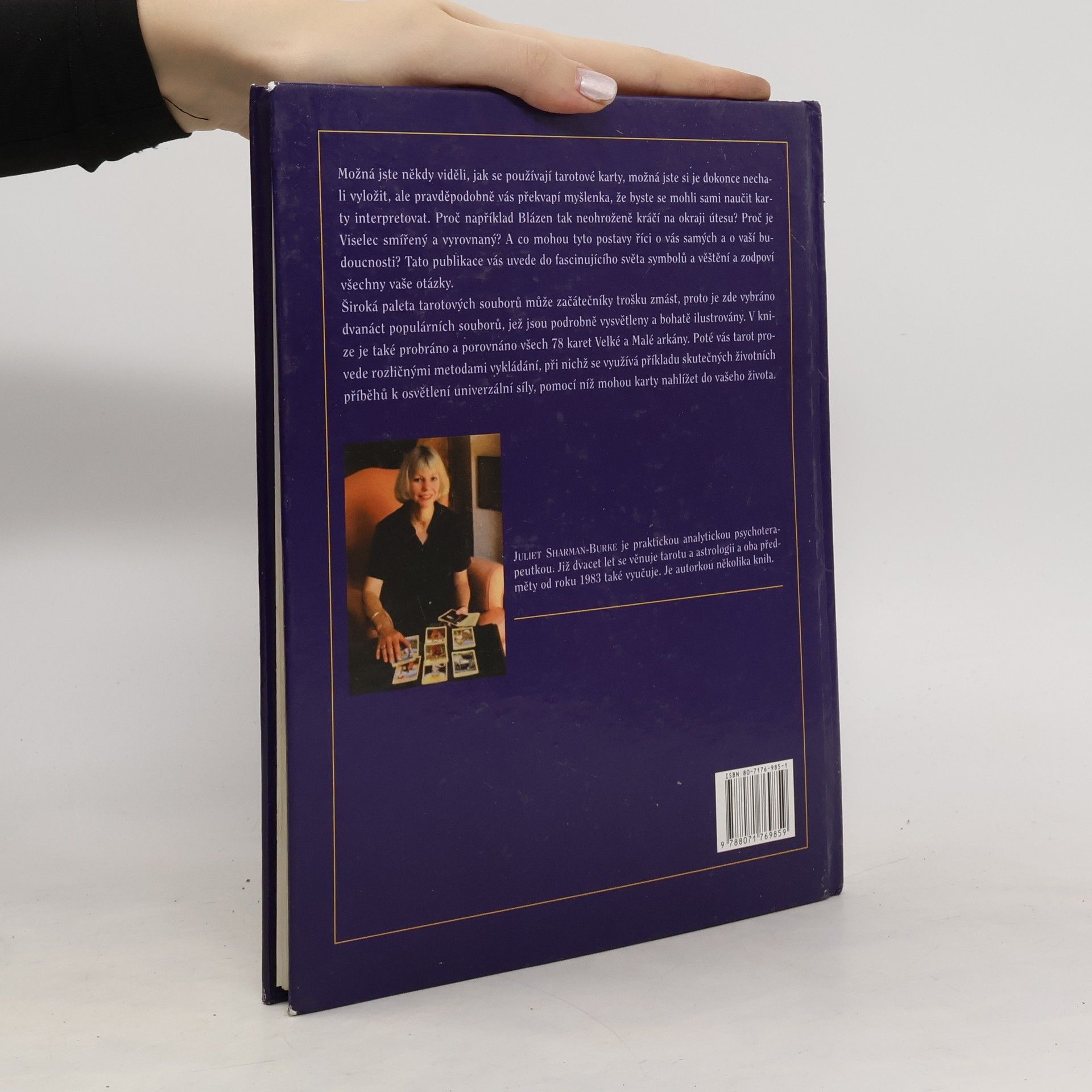 Publikace věnovaná studiu tarotových karet, zejména výkladu jednotlivých symbolů tak, aby s výkladem moh začít i ti, kteří tarot neznali. Široká paleta tarotových karet může začátečníky trochu zmást, proto je zde vybráno 12 populárních sad, jež jopu podrobně vysvětleny a bohatě ilustrovány . . V knize je probráno a porovnáno všech 78 karet Velké a Malé arkány. Poté vás provede rozličnými metodami výkladu s pomocí tarotových karet. Juliet Sharman-Burke se věnzje tarotu a astrologii přes 20 let a oba předměty vyučuje. .
