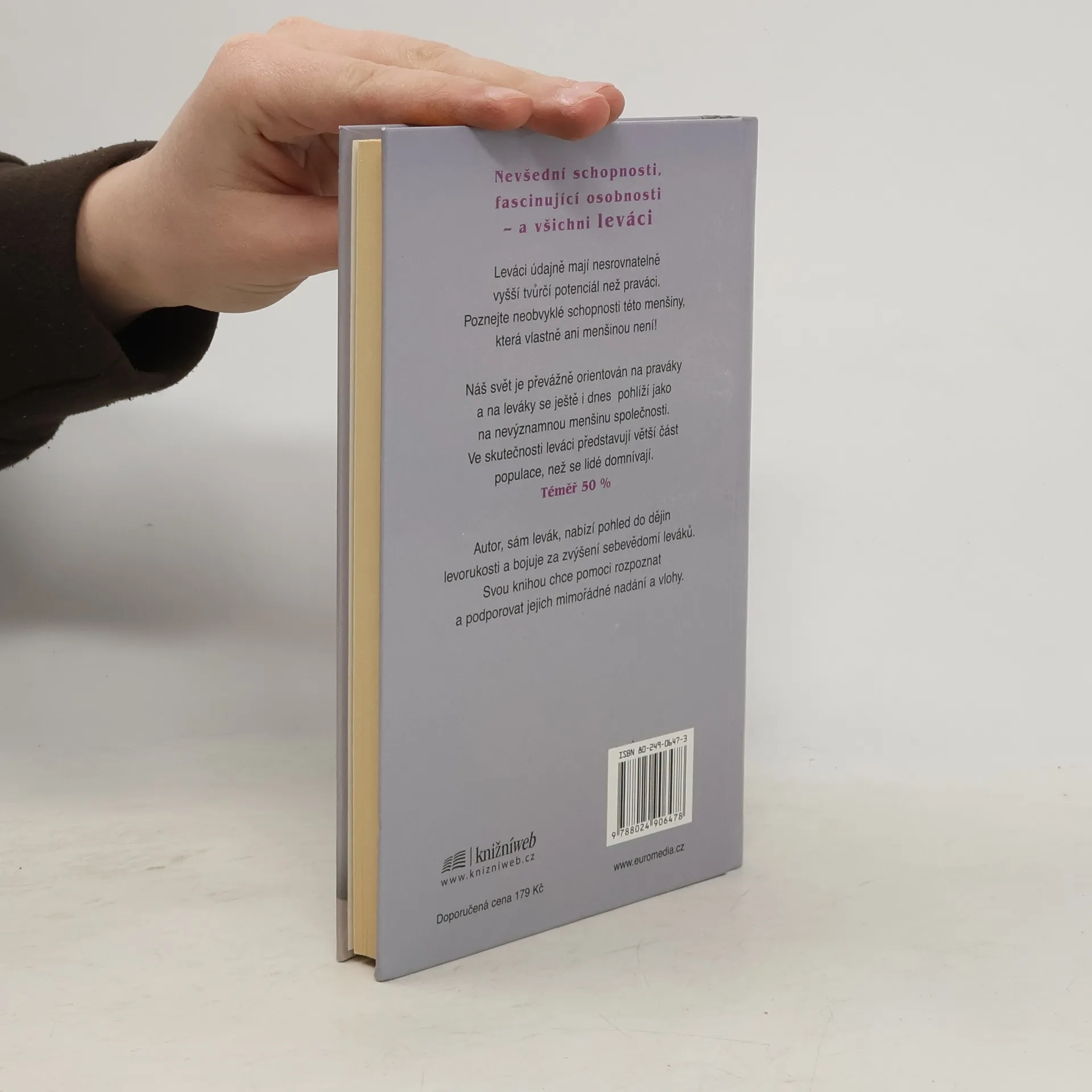 Nevšední schopnosti, fascinující osobnosti - a všichni leváci! Leváci mají údajně nesrovnatelně vyšší tvůrčí potenciál než praváci. Poznejte neobvyklé schopnosti této menšiny, která vlastně ani menšinou není! Náš svět je převážně orientován na praváky a na leváky se ještě i dnes pohlíží jako na nevýznamnou menšinu společnosti. Ve skutečnosti leváci představují větší část populace, než se lidé domnívají. Téměř 50 %. Autor, sám levák, nabízí pohled do dějin levorukosti a bojuje za zvýšení sebevědomí leváků. Svou knihou chce pomoci rozpoznat a podporovat jejich mimořádné nadání a vlohy.