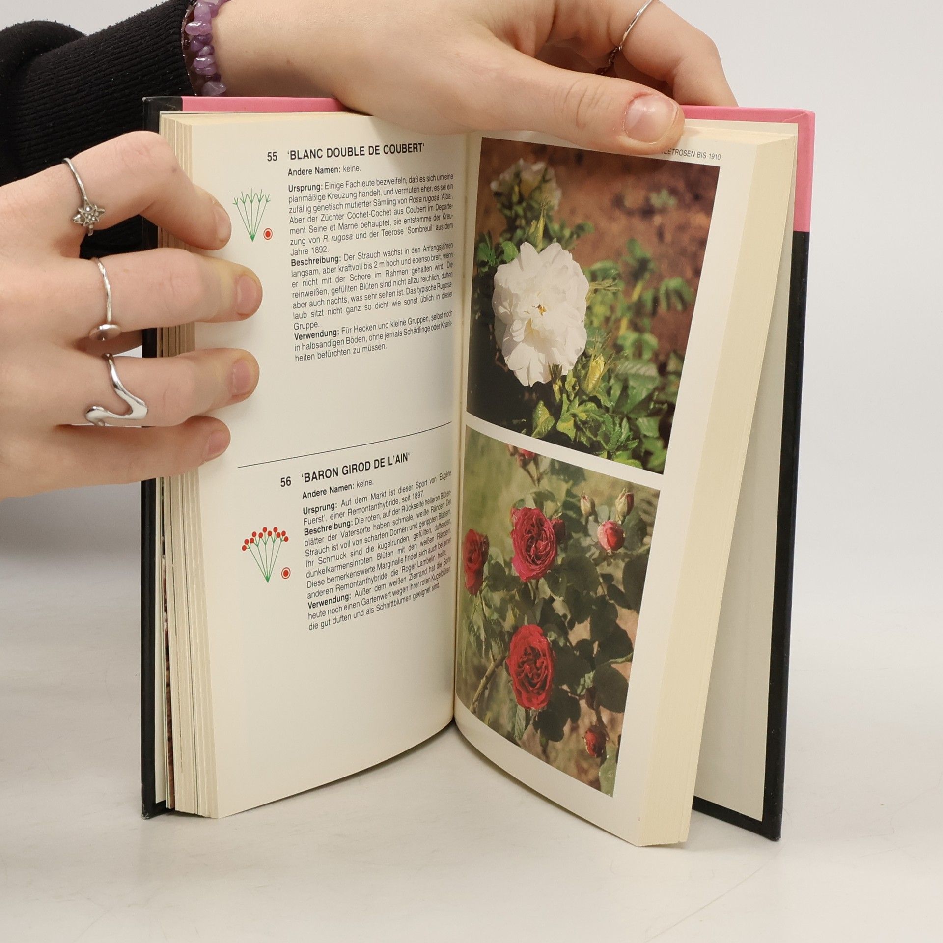 Wissenswertes über Herkunft, Eigenschaften und Pflege der Rosen; Kurzbeschreibungen von über 200 historischen und modernen Sorten.